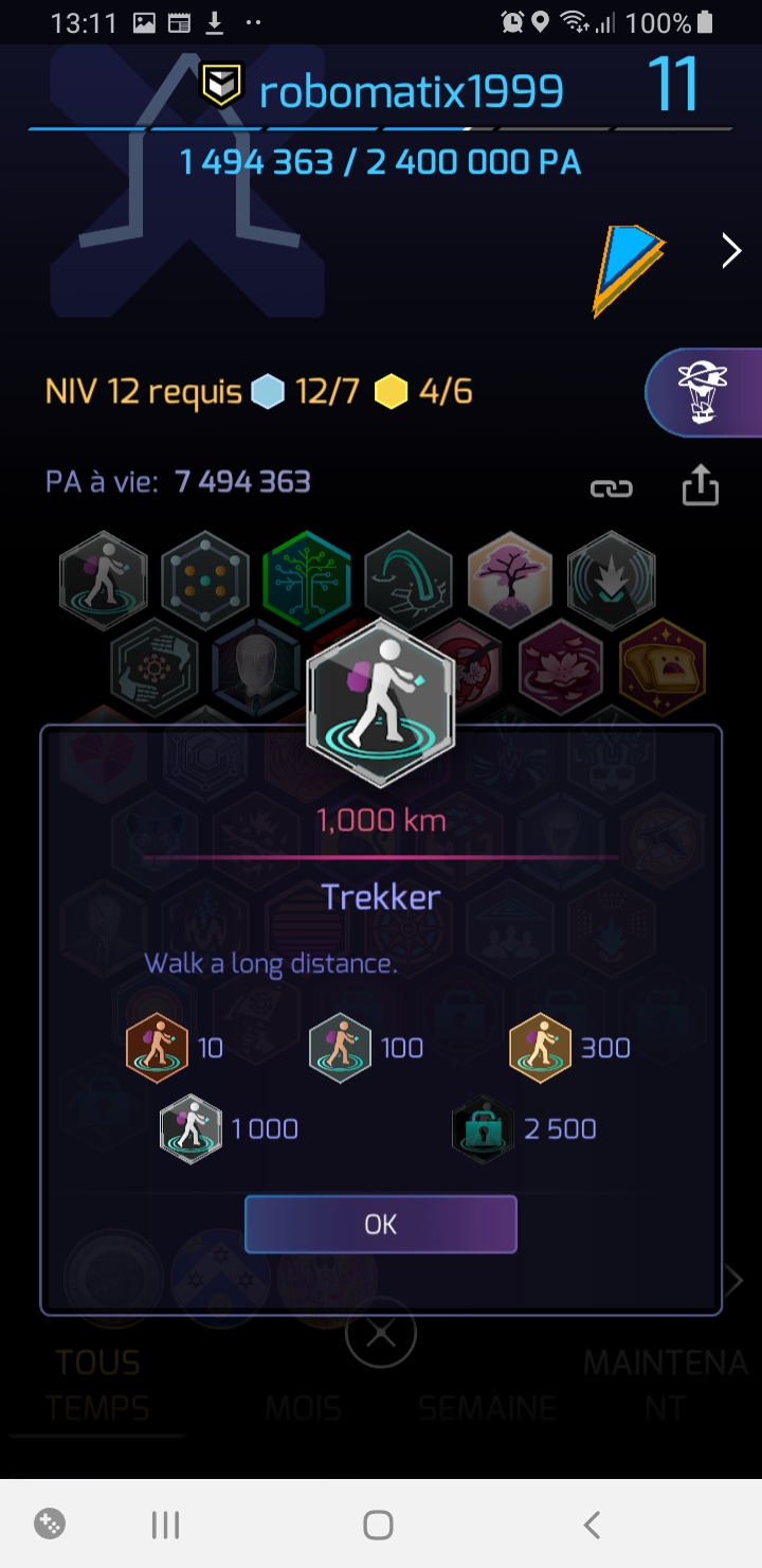 J’ai fait 1000 km en jouant à Ingress !!!! Du coup, J’ai gagné la médaille Platinium Trekker !!!! Ca fait toujours plaisir.