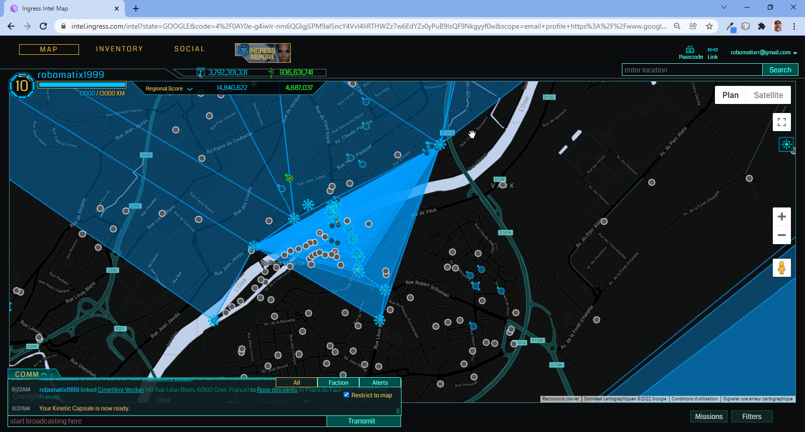 Je ne pensais pas aller si loin !!!! Je suis allé jusqu’au cimetière de Verdun à Creil. Ce ne fut pas si difficile sur le coup. mais je l’ai senti dans les jambes toute la semaine. Et en rentrant chez moi, en regardant la carte Ingress, je me suis rendu compte que j’avais les clés pour relier le Cimetière à d’autres portails et ainsi faire des fields.