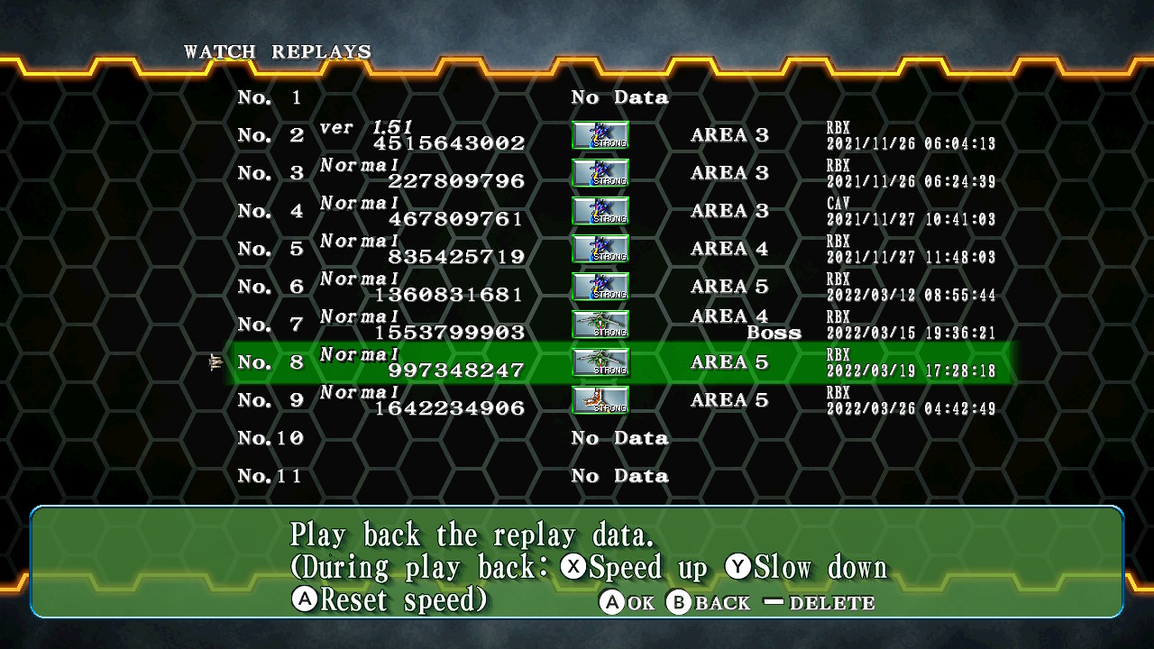 Comme on peut le voir sur la capture d’écran, c’est avec le Type A que j’ai fait le meilleur score !!!! Ce fut une surprise. En fait, j’ai bien réussi à scorer au début du jeu. Ce qui m’a permis d’avoir l’extend lié au score assez rapidement. Je pense dons tenter le 1-CC avec le Type A plus tard.