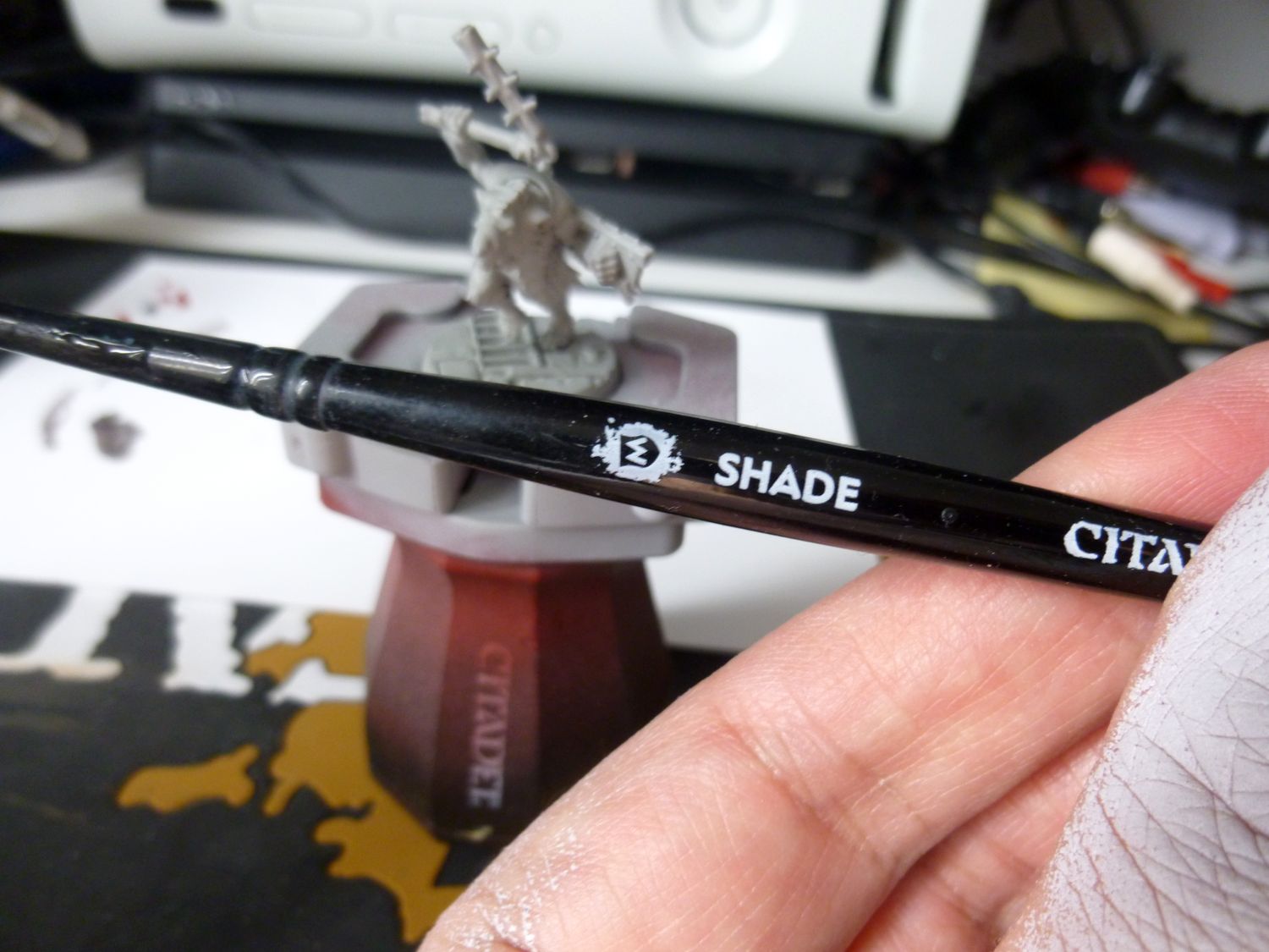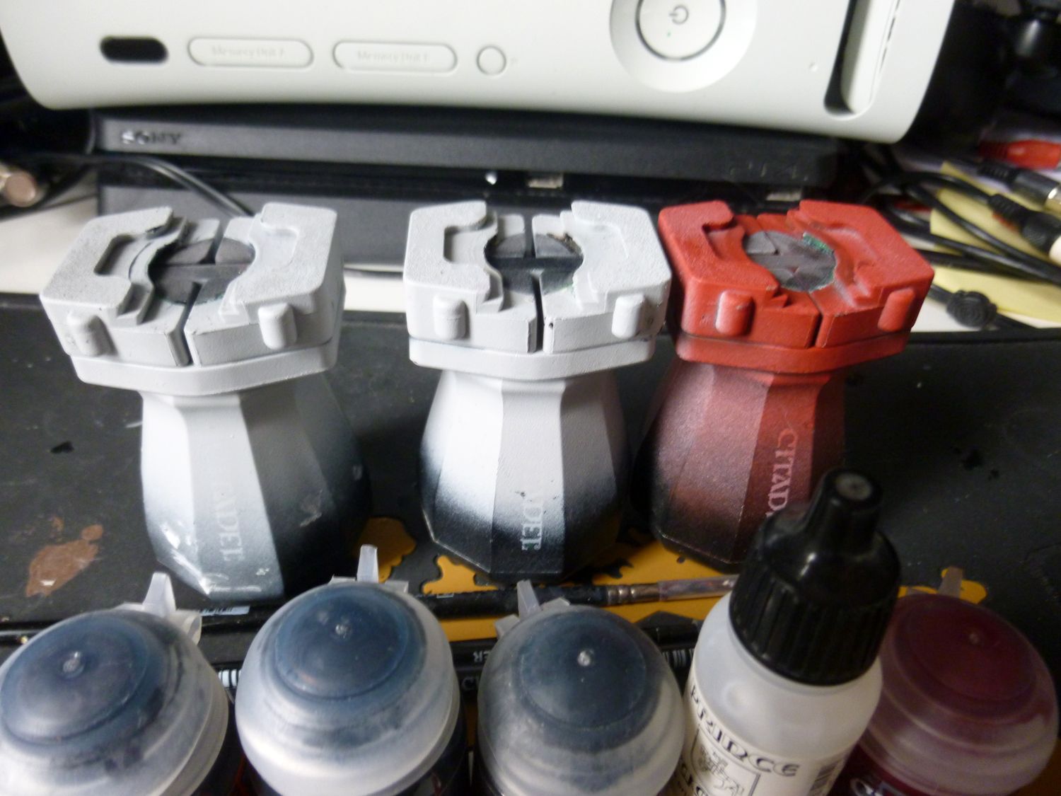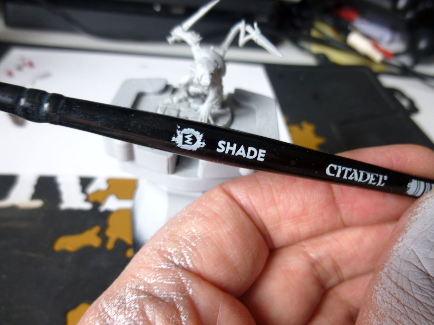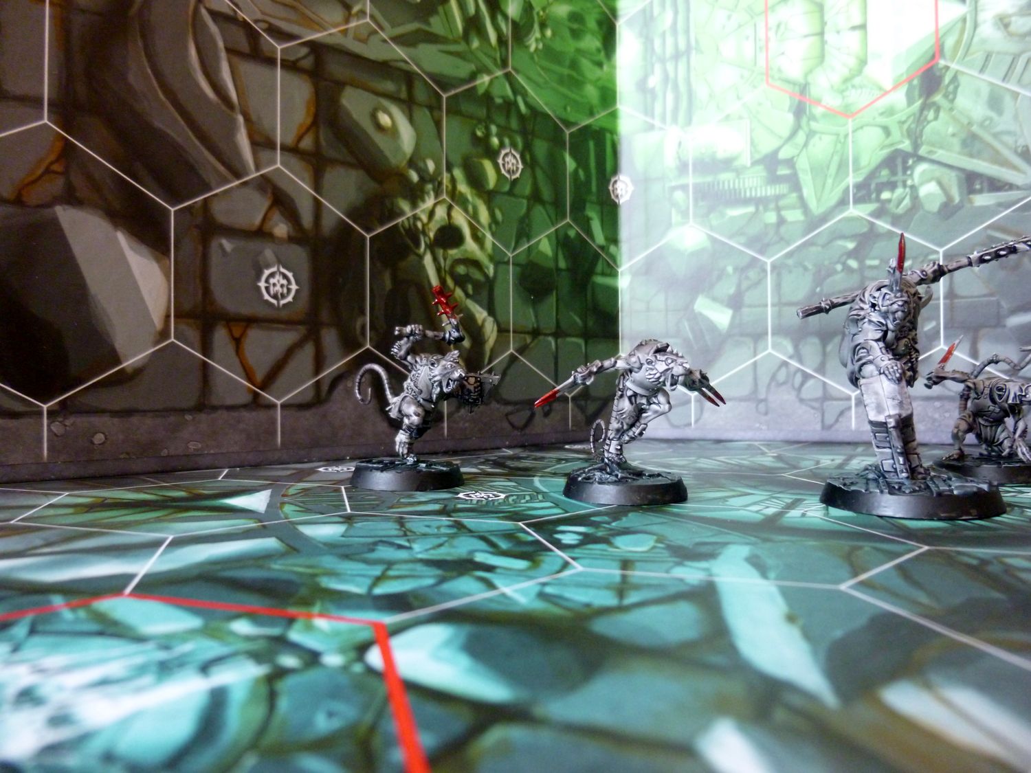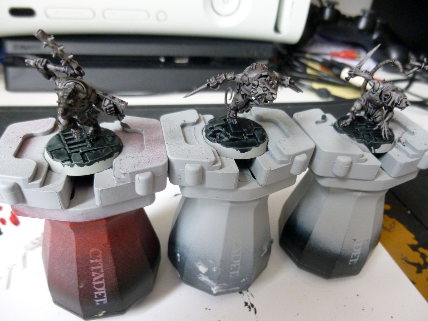 Je suis satisfait du résultat. Même si en regardant de prés, tout n’est pas top. Mais le rendu général est bon pour jouer je trouve. Petite remarque, ma figurine de test est légèrement mieux je trouve. Il est légèrement plus claire. Je pense que c’est parce que j’ai mis plus d’eau au départ dans ma contrast grise. Je referais un test avec mes goules en ajoutant un peu de médium à la contrast.