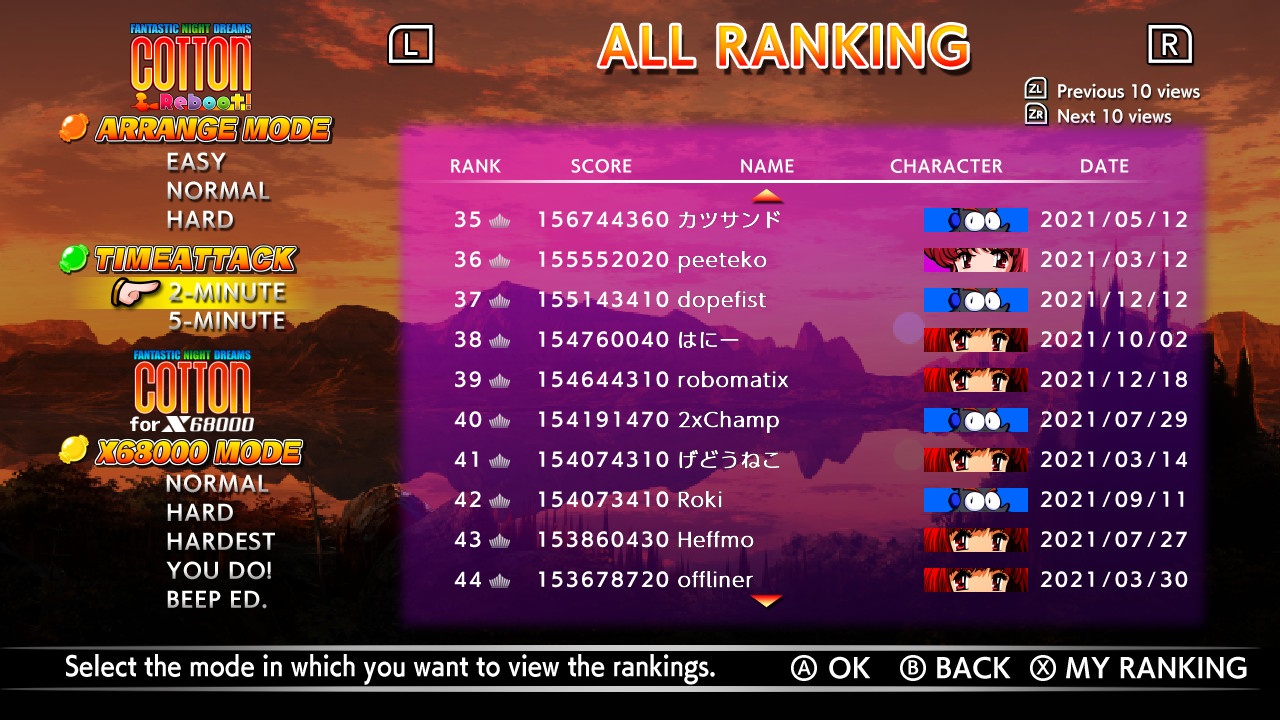 Hé ! Hé ! Ça fait une semaine que je suis dans le top 50 du Time Attack 2 minutes de Cotton Arrange sur switch !!!!