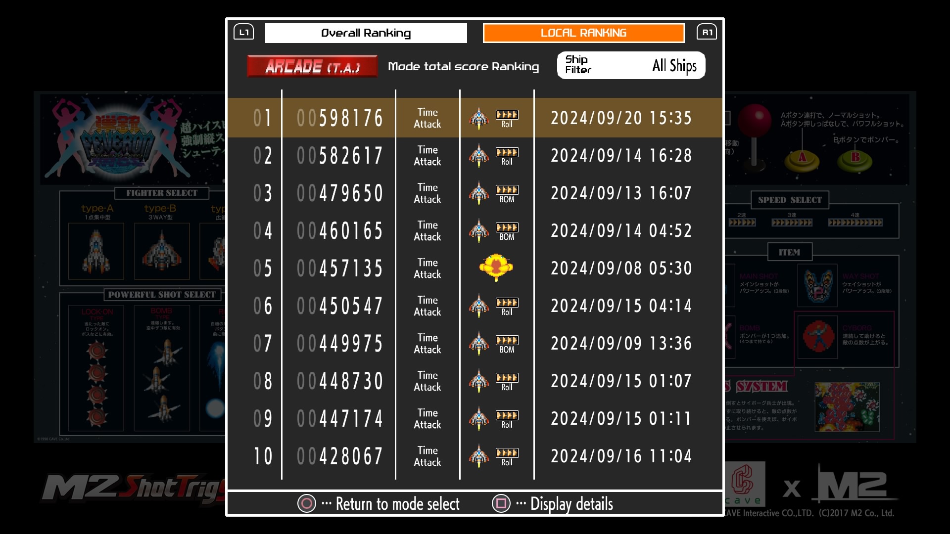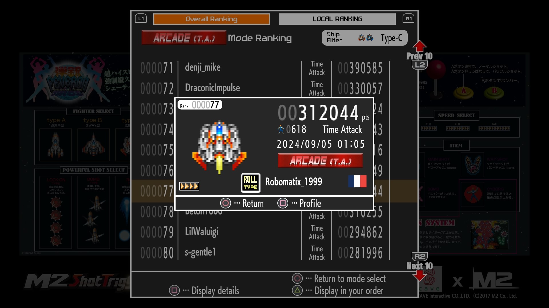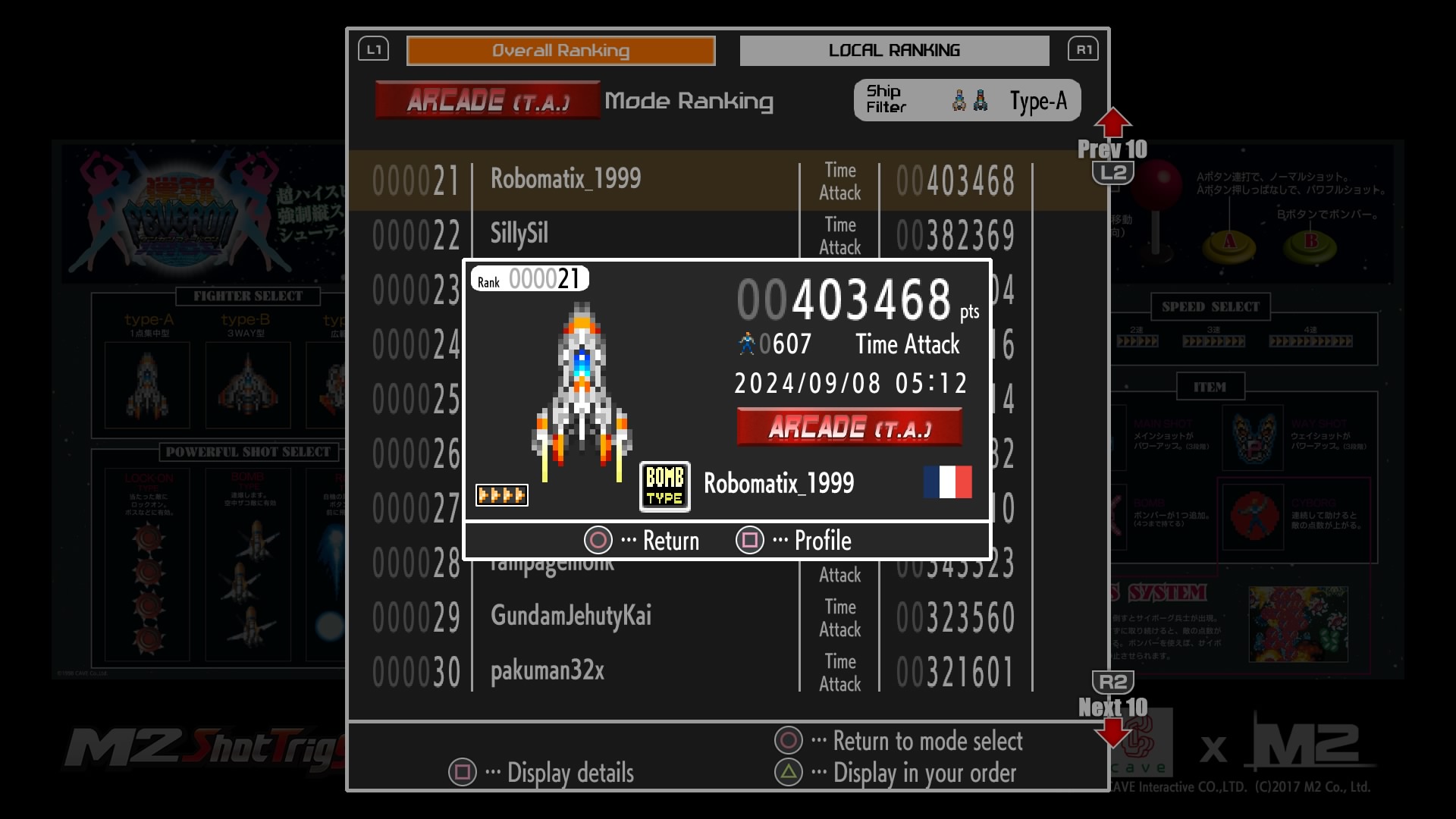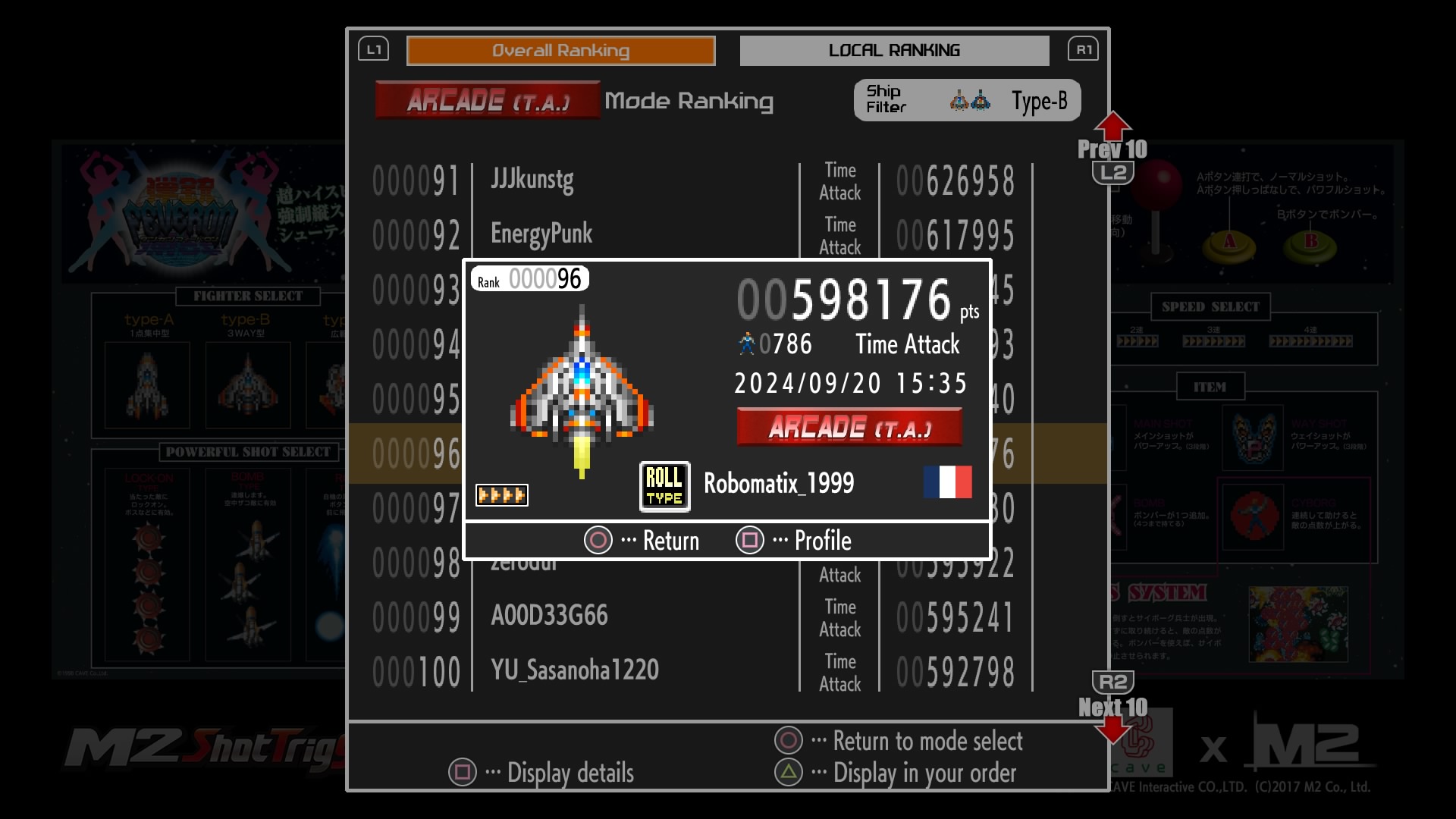 Hé oui, je suis dans le top 100 du Time Attack Arcade de chacun des vaisseaux au 20/09/2024.