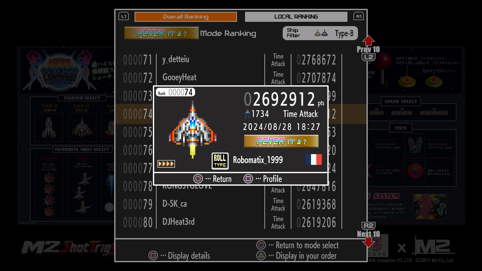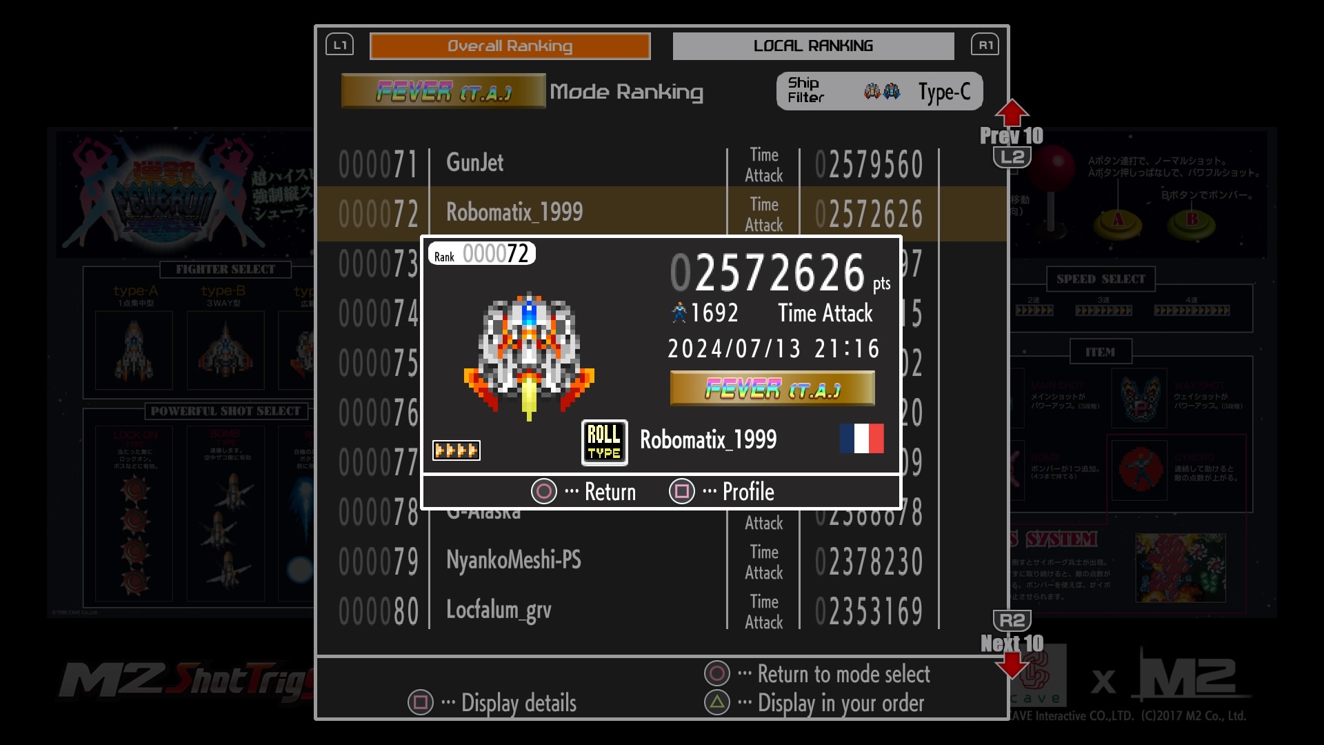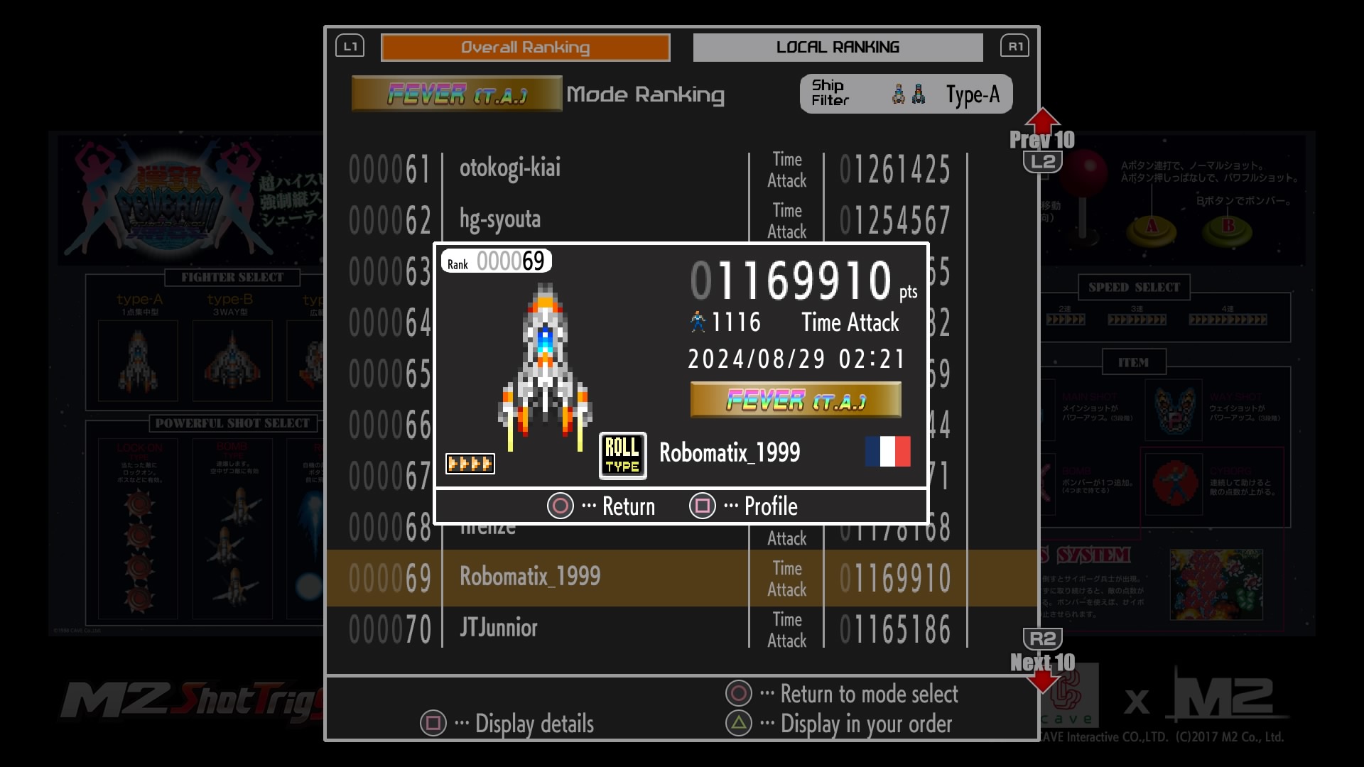 Hé oui, je suis dans le top 100 du Time Attack Fever de chacun des vaisseaux au 03/09/2024.