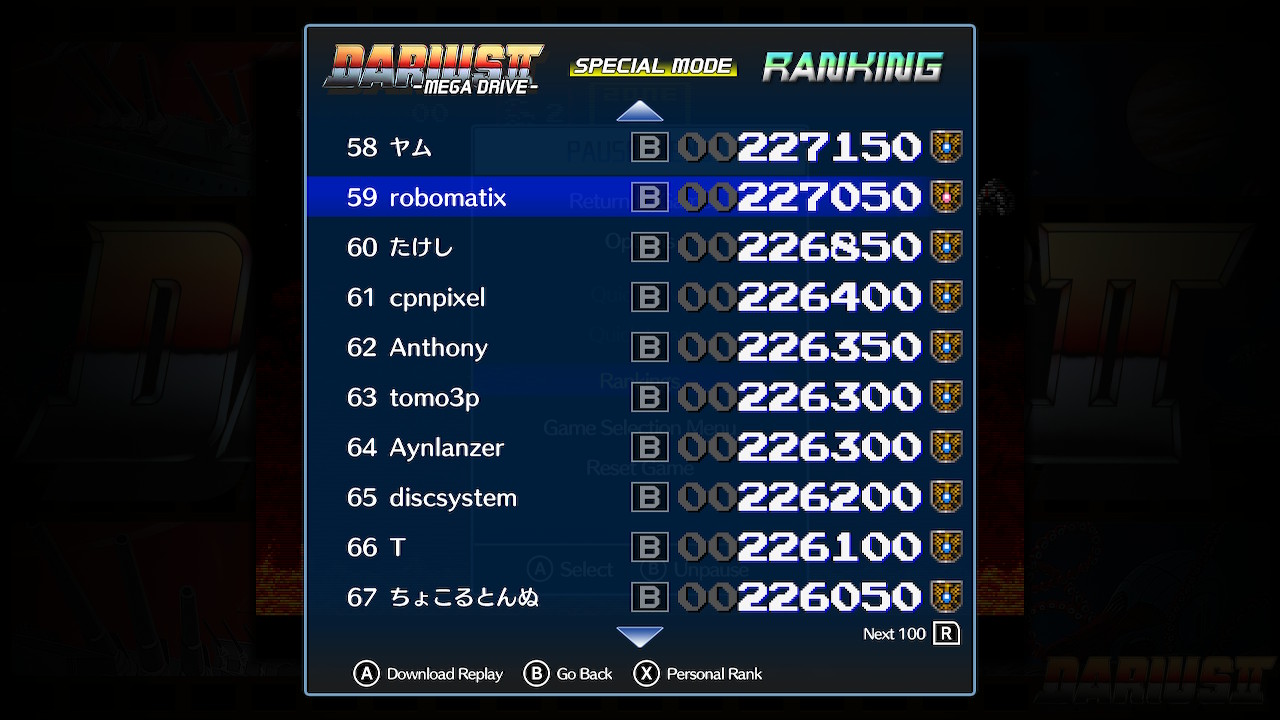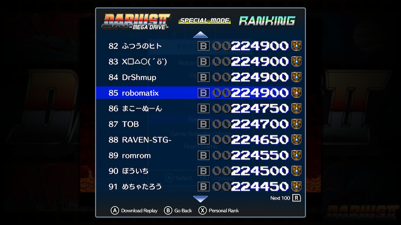 Dans le top 100 de Darius 2 Special Mode !!!!
