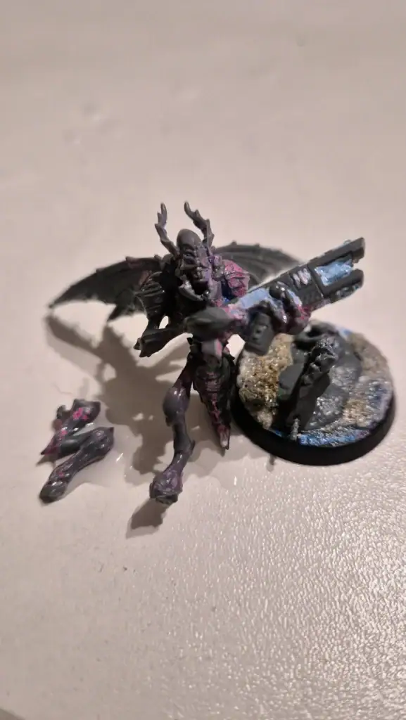 Après mes tests concluants sur mes cultistes, je me suis attaqué à mon guerrier Vespide dont j’ai foirer la peinture. Vous pouvez voir ce guerrier Vespide sur cet article.