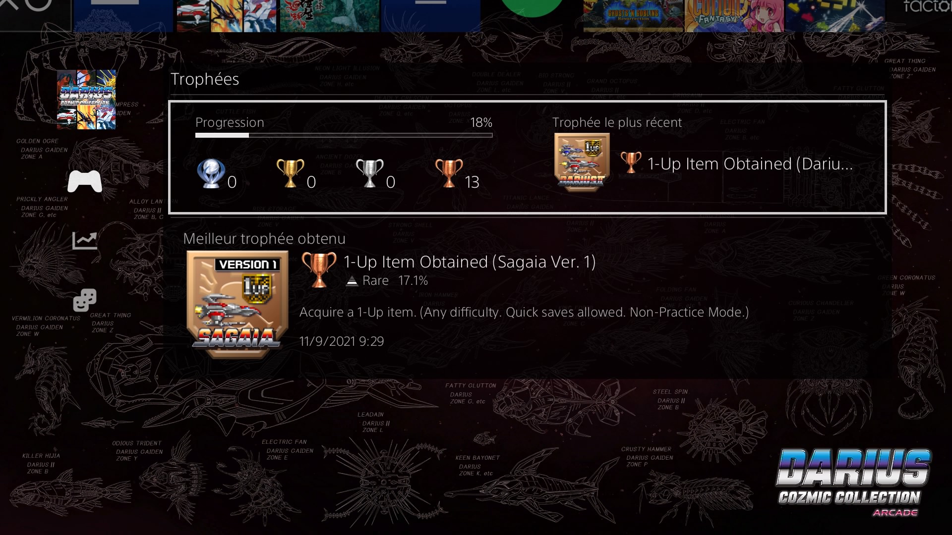 Darius Cozmic Collection Arcade est une des compilation de jeux que j’ai sélectionné pour 2024. Je me suis lancé le défi d’en débloquer tout les trophées sur PS4 !