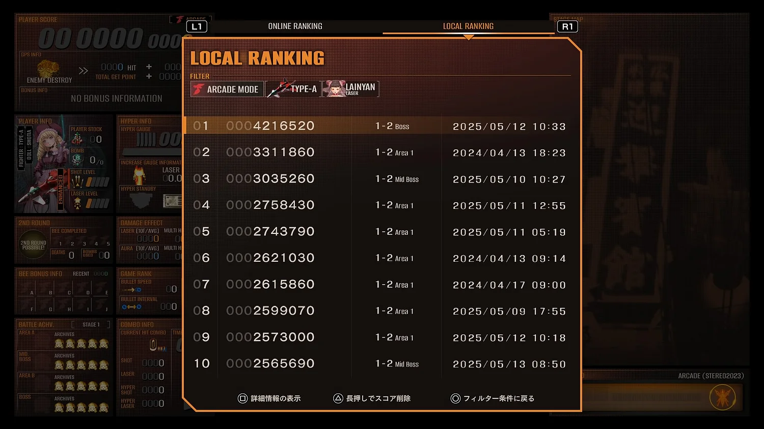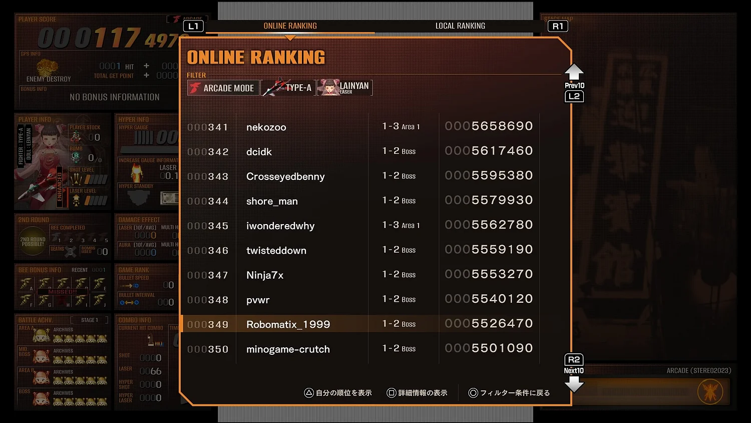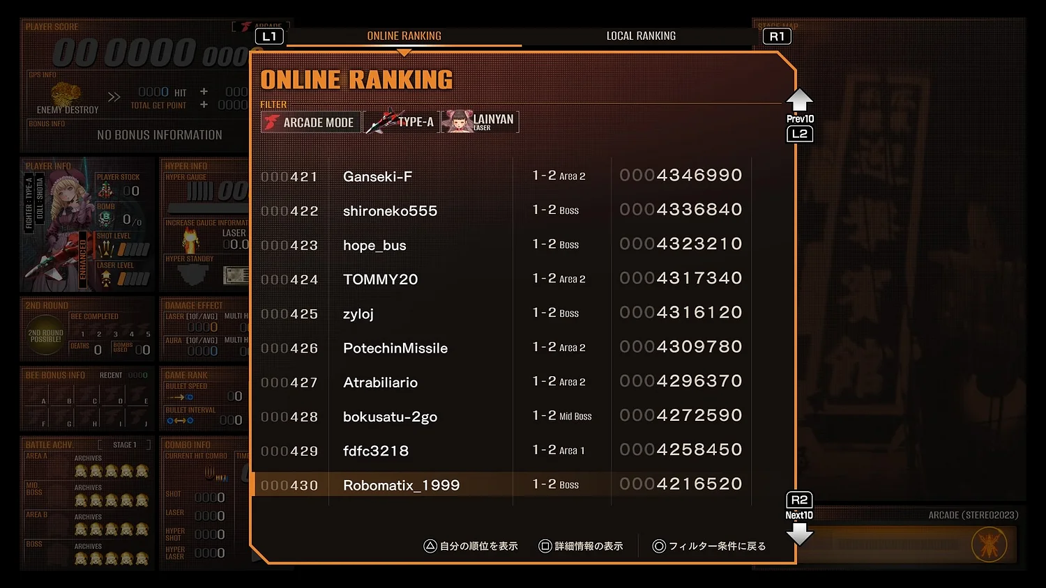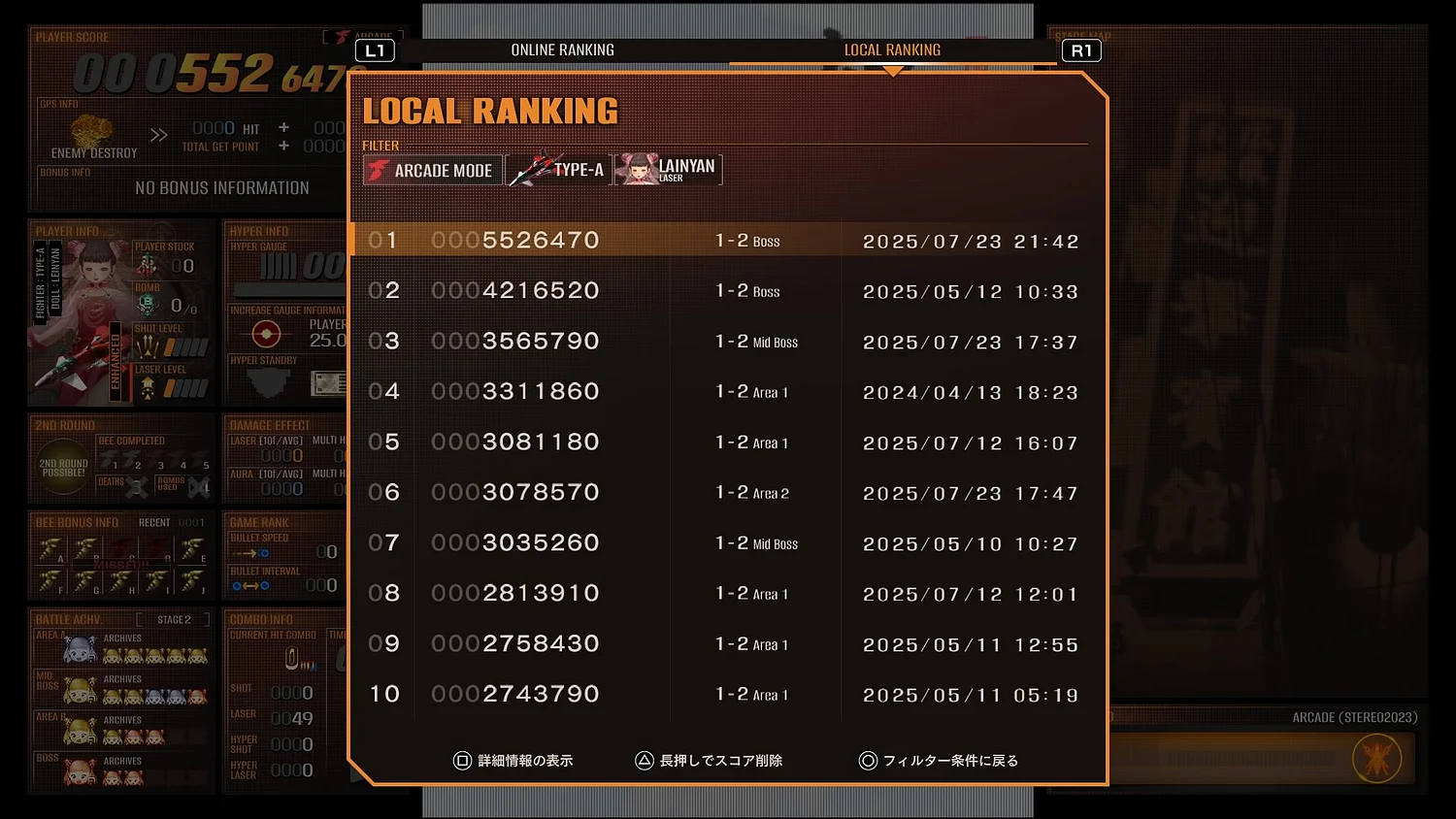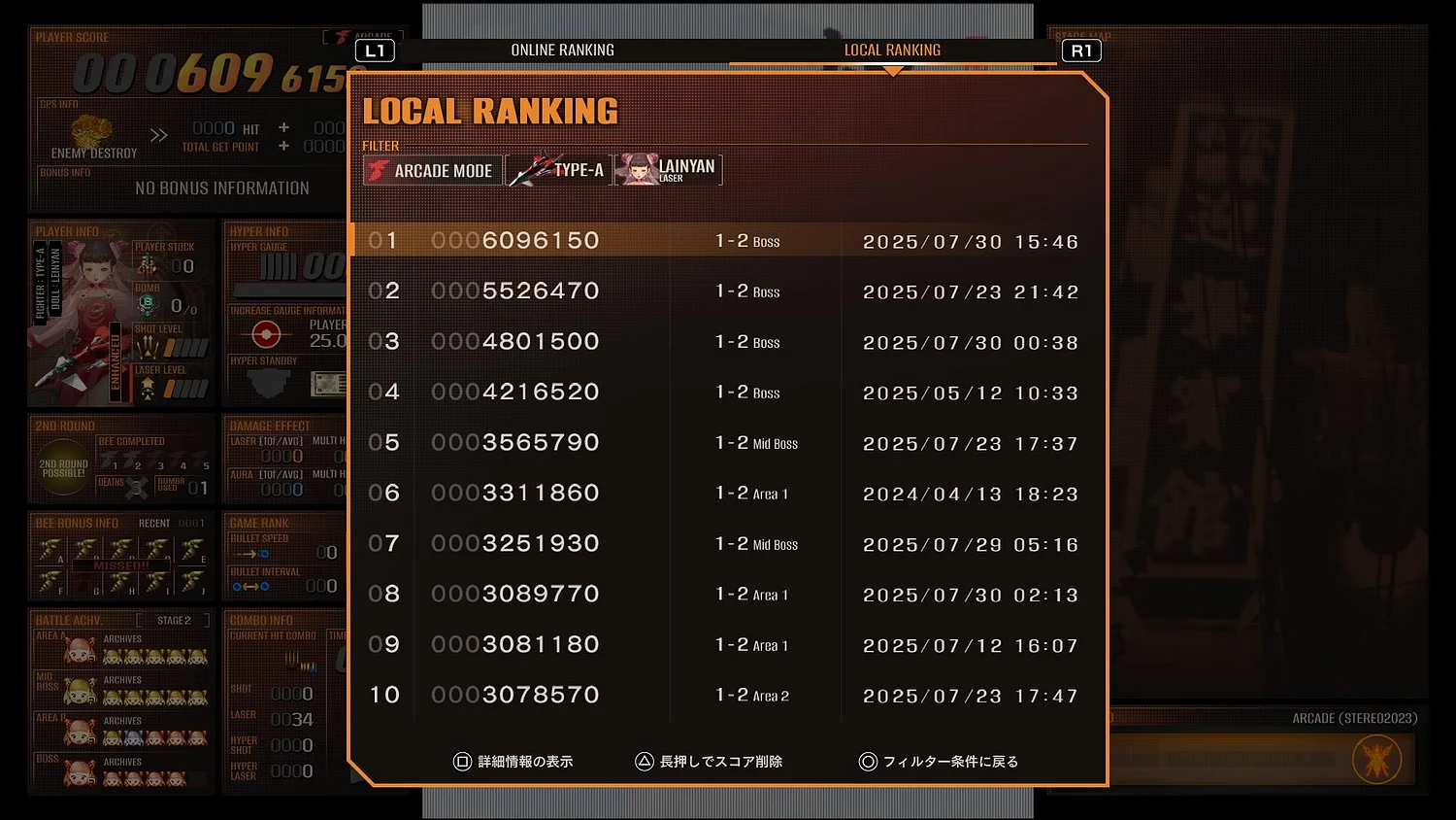 J’essaie de 1CC DoDonPachi SAI-DO-JOU avec TYPE A LAINYAN. J’aime bien ce combo. Il est rapide et souple je trouve. Je le fais principalement sur ma PS4 et je joue parfois, en mode nomade sur Nintendo Switch.