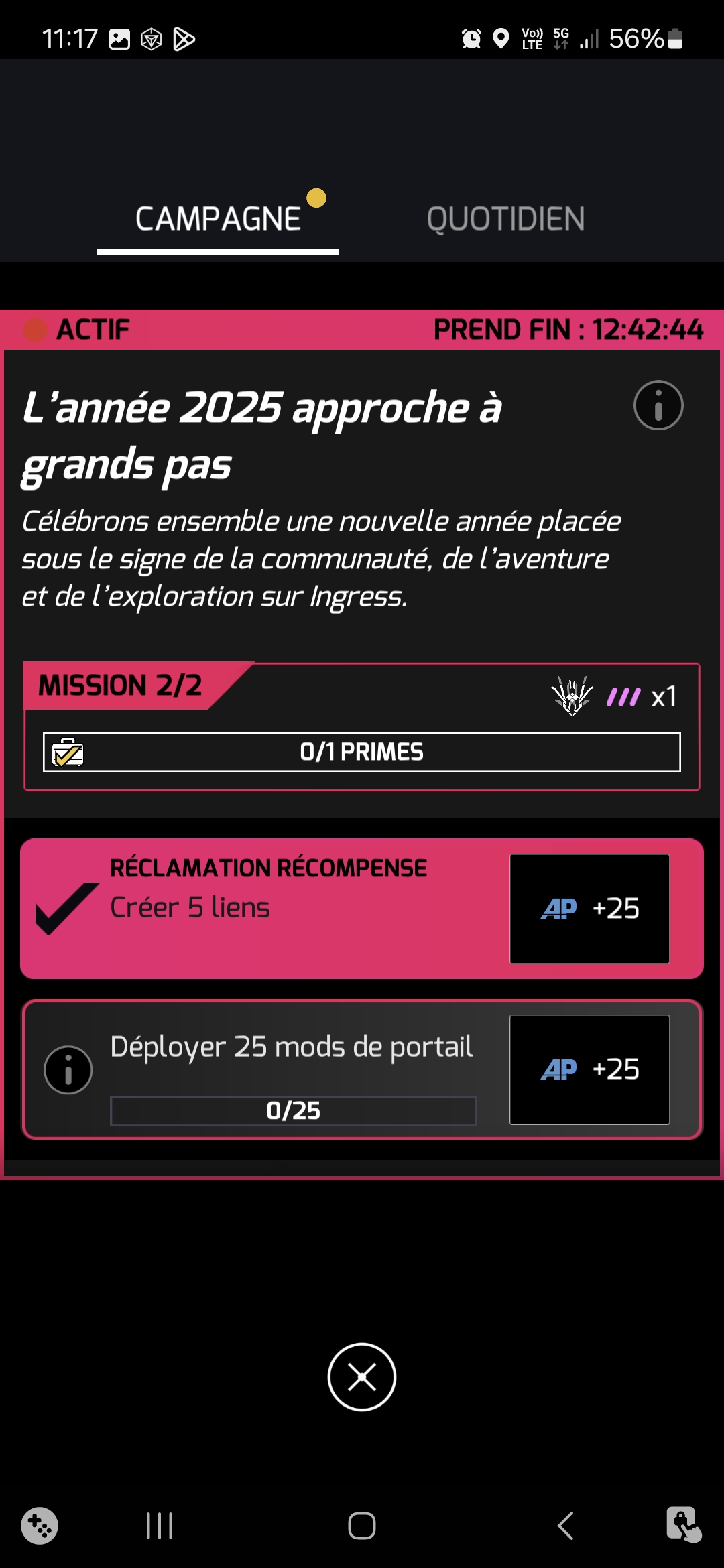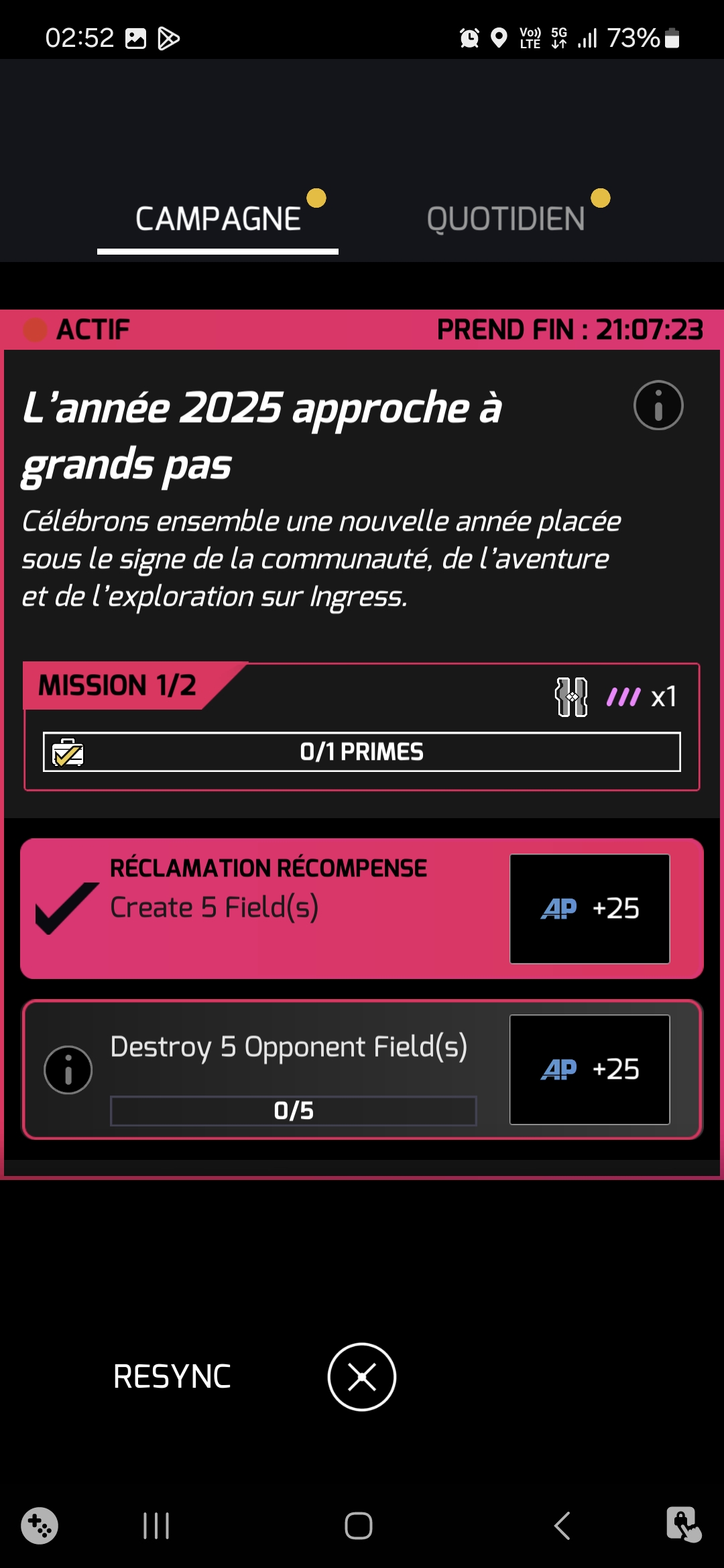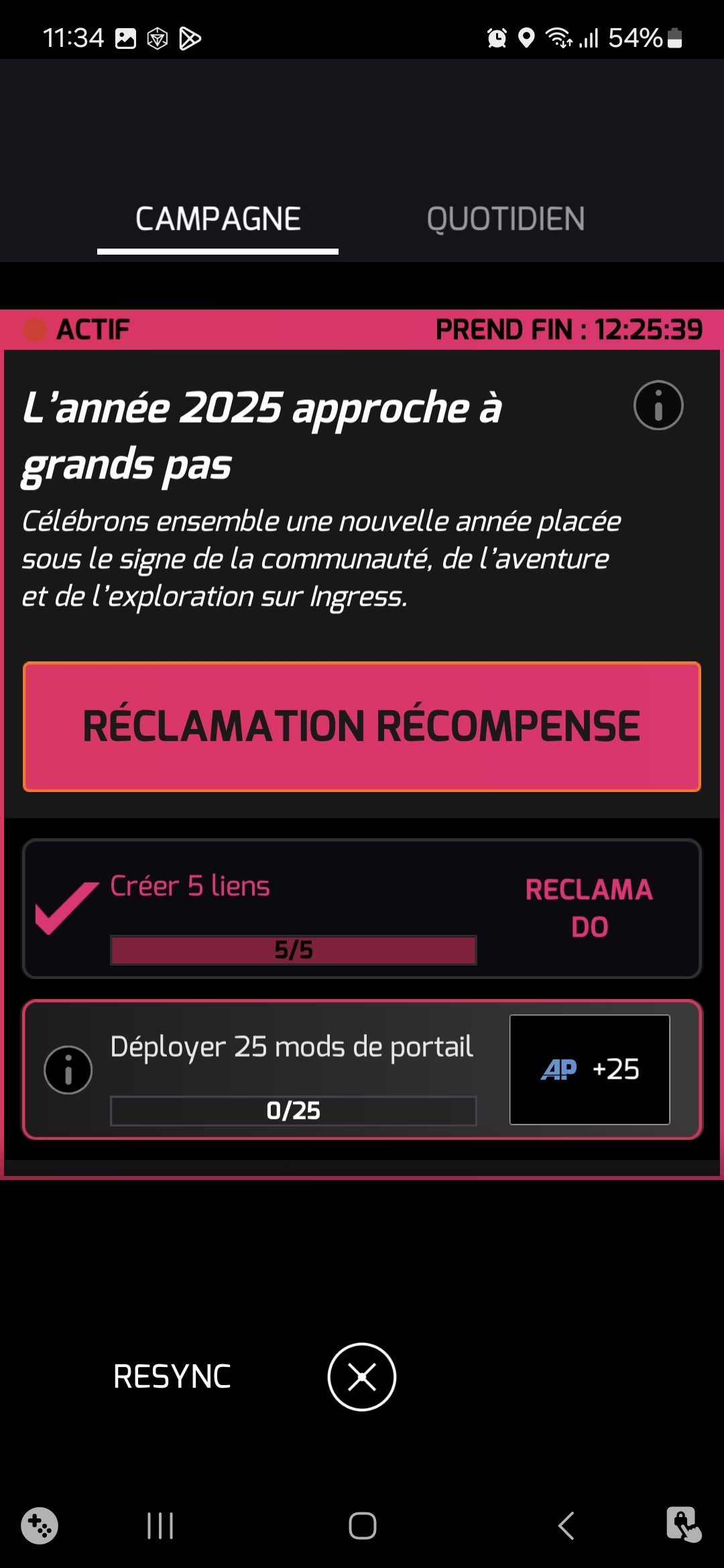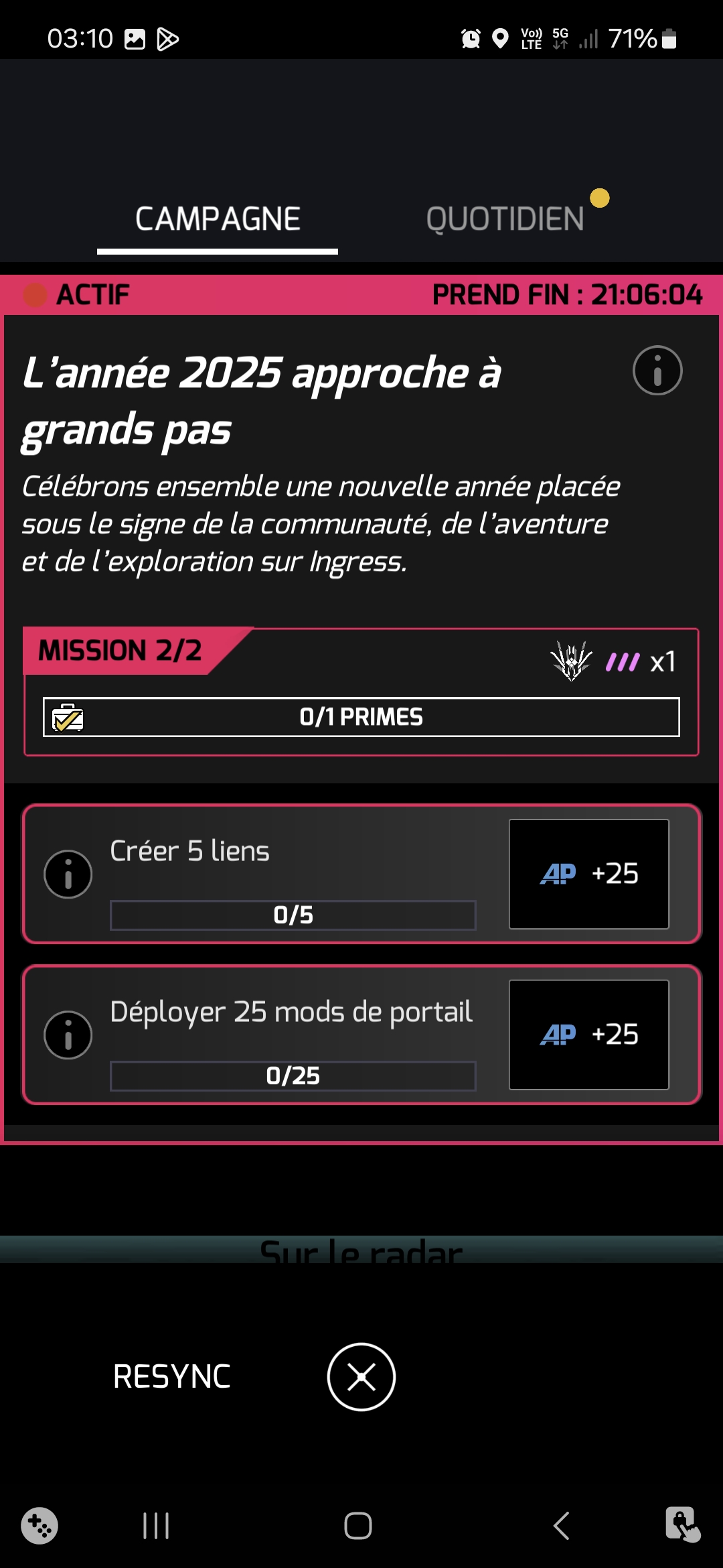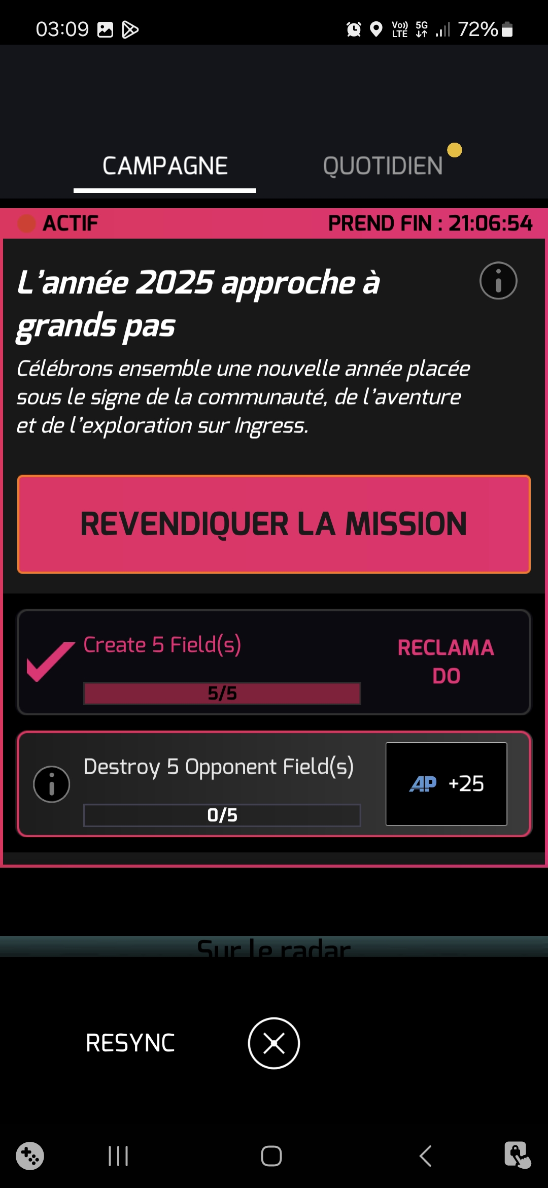 Je découvrais ensuite la seconde mission. Créer 5 liens, possible ! Mais pas pendant la nuit car il fait nuit noire là où je voulais les faire.