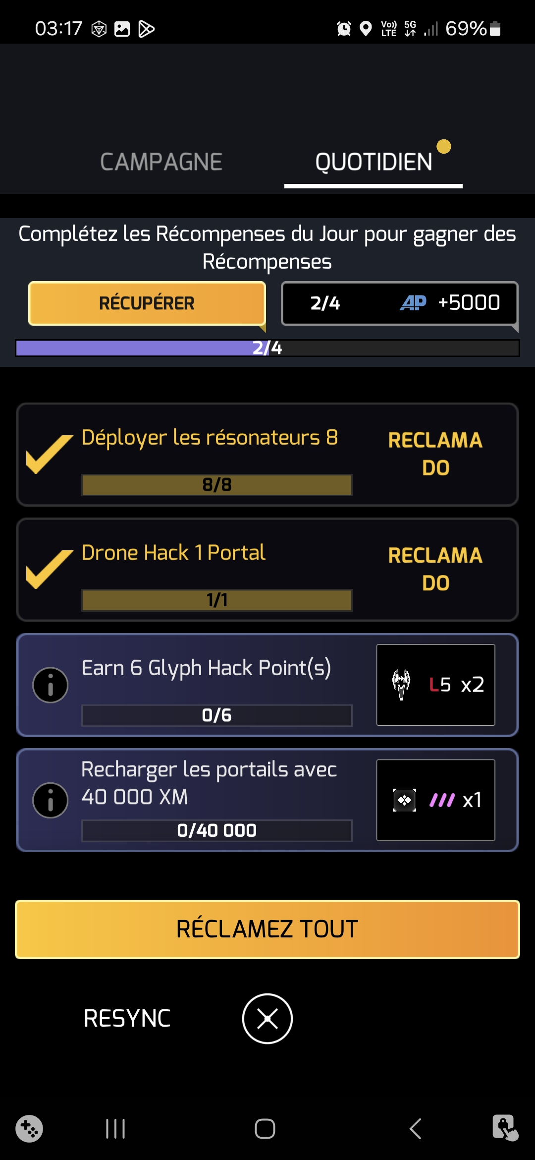 J’ai vu que j’avais une récompense du jour et voyant que je pouvais facilement faire un drone hack, je le fis et obtenais une deuxième récompense. Je les clamais avant d’oublier.