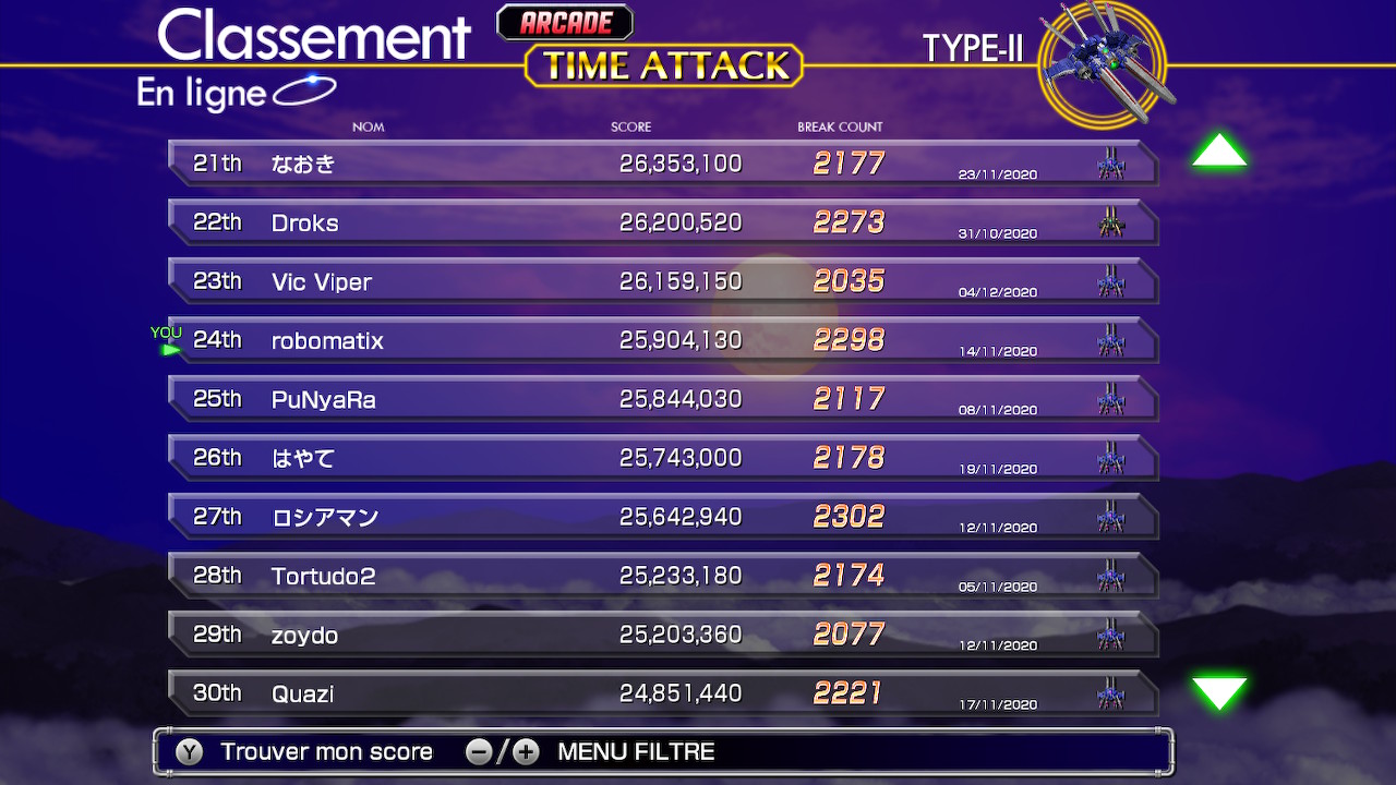 Donc, je me fixe comme objectif d’être dans le Top 50 avec chacun des vaisseaux. D’autant plus que je le suis déjà avec le Type-II !