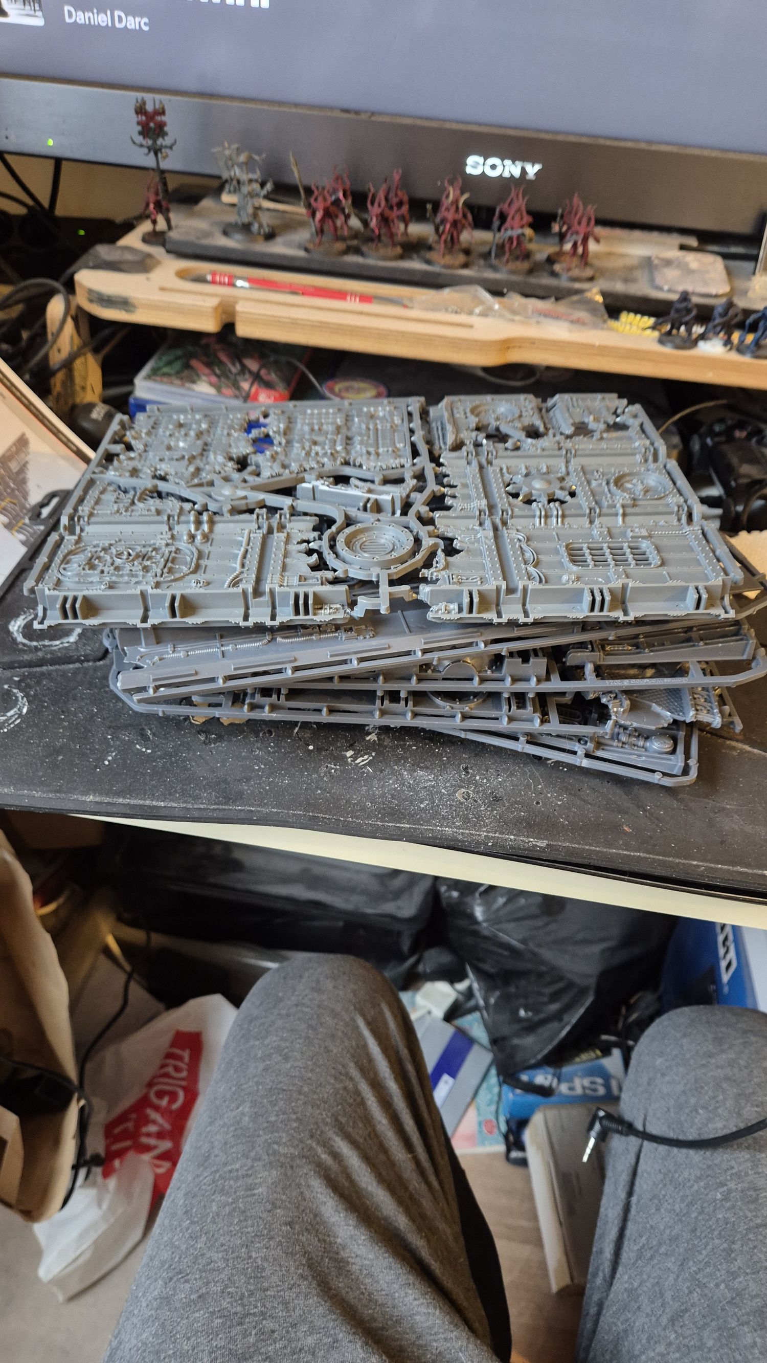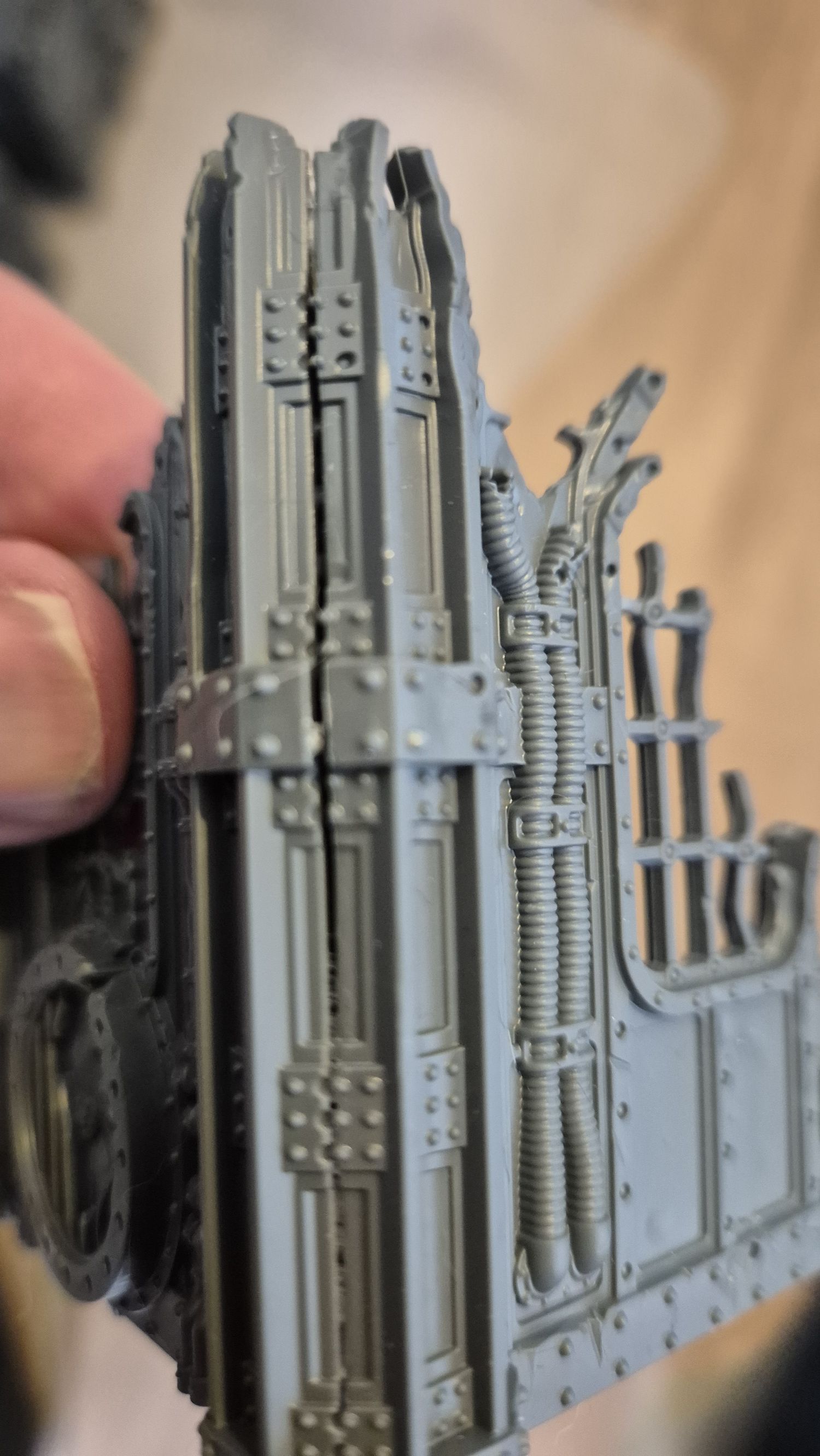J’ai retiré le plus gros des lignes de moulage. Mais il en reste pas mal. Je pense les retirer décor par décor au moment de les peindre.