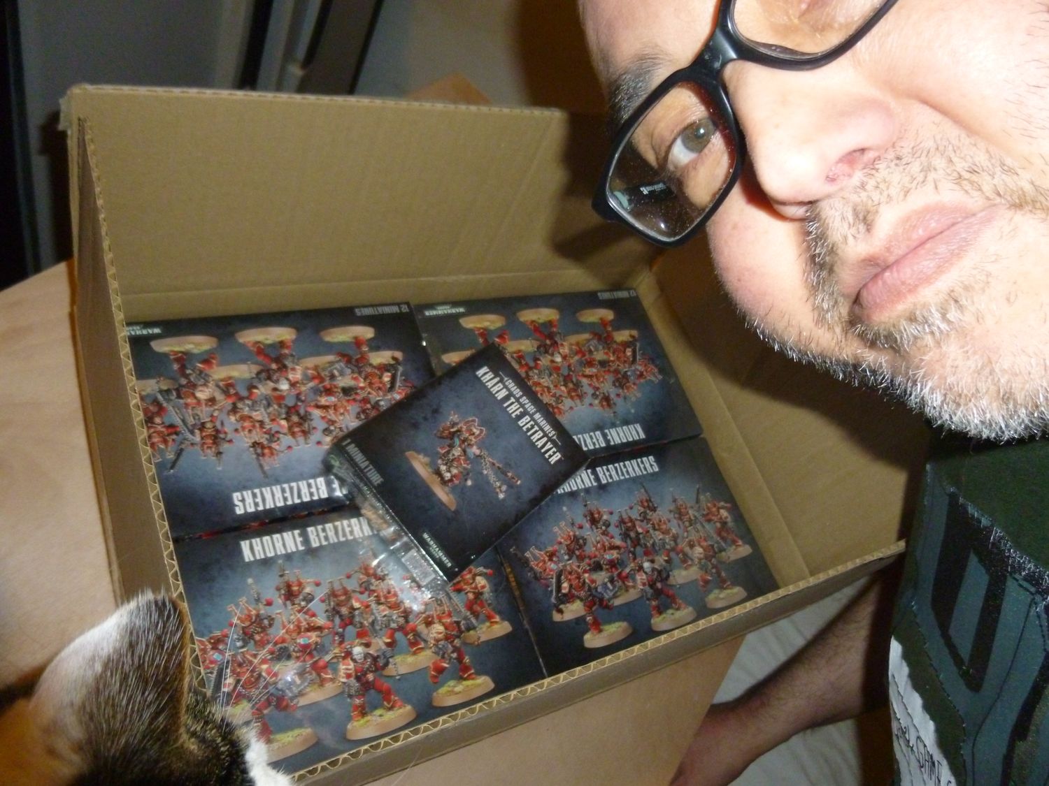 Et oui, j’ai craqué pour l’ensemble de boites « Maelstrom of Gore » pour »Maelstrom of Gore » pour 40K !!!! 48 Berzerkers et Khârn. En fait, il y 20 environ sortait les berzerkers en plastique. J’ai adoré le concept. Des assoifé de sang qui courent pour aller au cac quoiqu’il en coûte ! J’avais acheté 2 ou 3 trois boites pour faire deux unités de 16. Depuis, je les ai jeté car ils prenaient de la place et je ne voulais pas que quelqu’un d’autre les jouent. Maintant, quelques années plus tard, je me remet à 40K et craque pour réaliser mon trip d’il y a 20 ans : une armée principalement composée de berzerkers qui chargent pendant que des oblitérators tirent par dessus ! J’ai maintenant tout ce qu’il faut pour réaliser ce rêve ! Reste plus qu’à tout monter et trouver un adversaire qui soit ok pour affronter une telle armée.