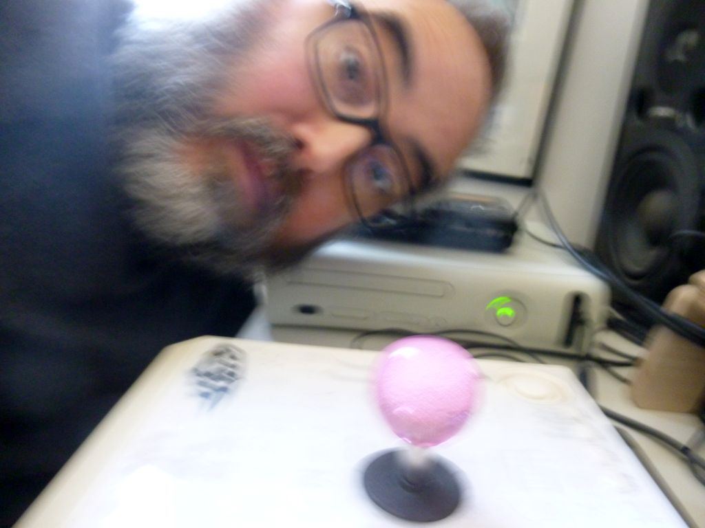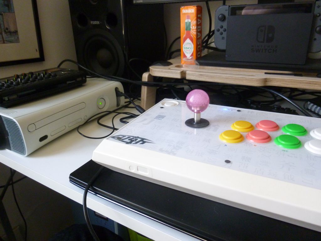 Bon, allez, quelques photos de mon set-up temporaire avec des gros plans sur mon Arcade Joystick Qwanba amélioré avec l’aide de Kibo !