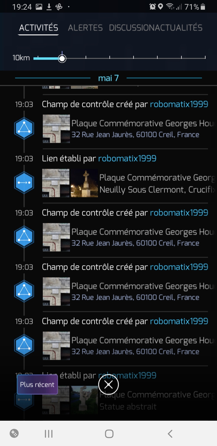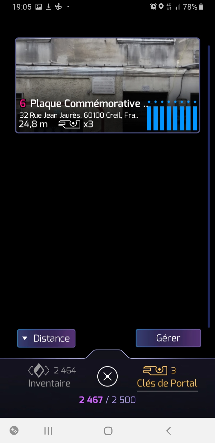 Hé oui, pour faire grimper cette médaille, j’ai décidé de laisser mourir un portail, celui de la plaque commémorative pour Georges Houdu, qui est relié à d’autres assez loin et d’ainsi récolter des Mind Units pour faire grimper la médaille « Illuminator ».