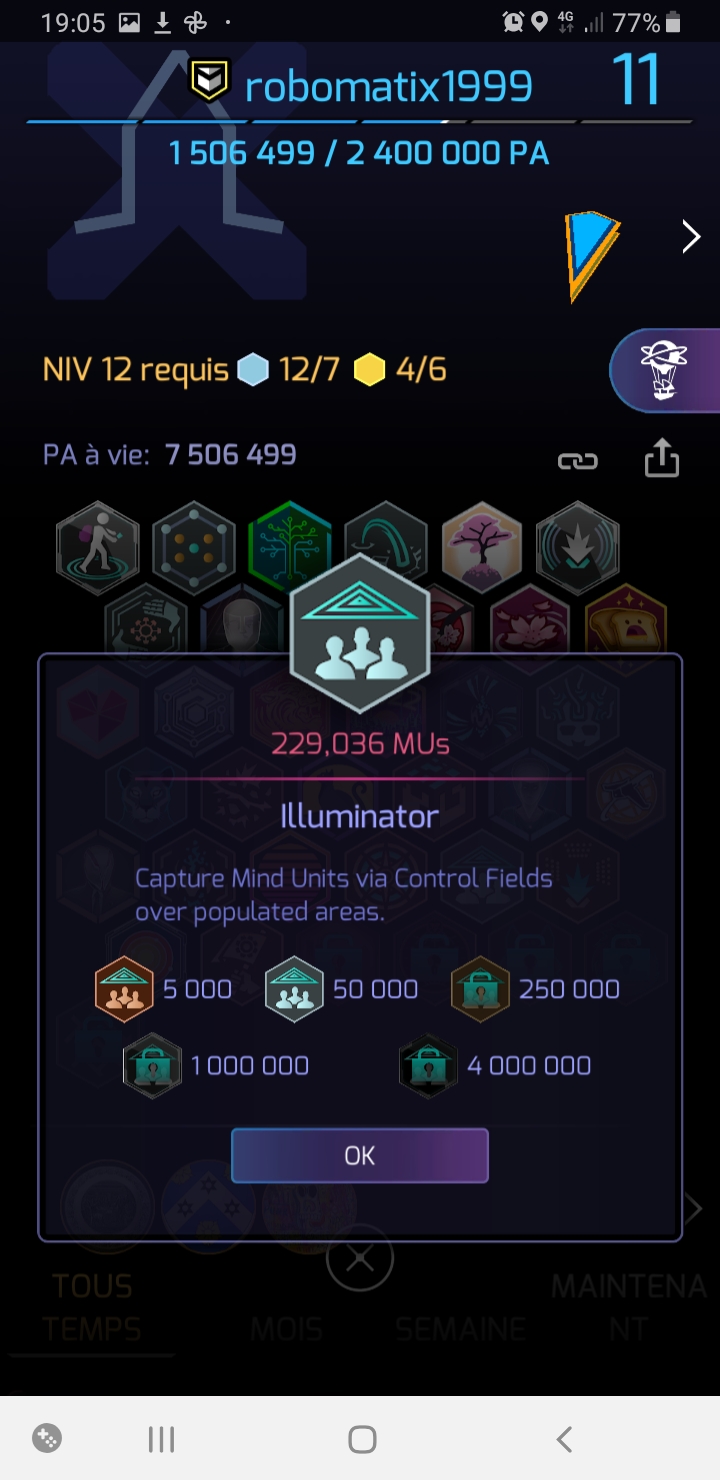Dans ma quête aux médailles en or pour pouvoir passer au niveau 12, J’ai décidé de faire l’opération Georges Houdu. Pour faire grimper une médaille… La médaille « Illuminator » !!!!