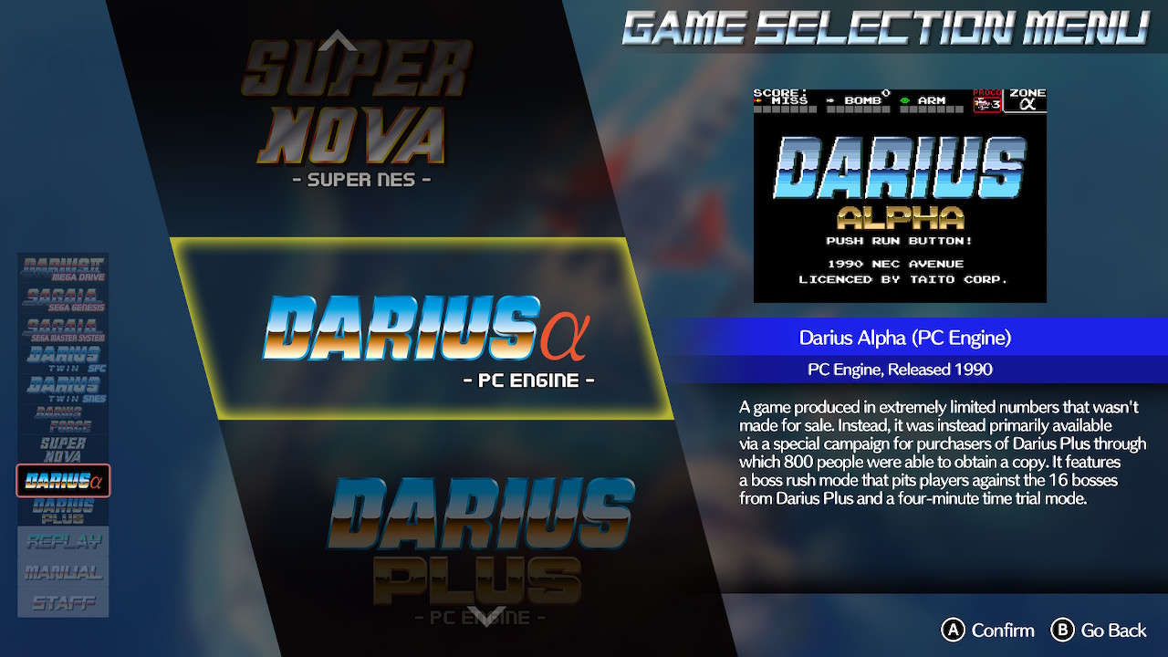 En effet, dans ma switchomania, je cherche depuis quelques temps un shmups qui ne demande pas trop d’investissement temps. Bien qu’ayant beaucoup de bons shmups sur ma switch, je ne trouvais pas mon bonheur. De plus, je voulais un leaderboard et du replay. A un moment, j’ai fini par regarder du côté de Darius Cozmic Collection Arcade, et j’ai fini par jeter mon dévolu sur certains modes de Darius Alpha.