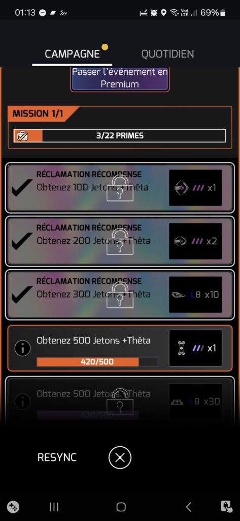 Le mois d’Avril 2025 a vu commencé le campagne +Thêta à Ingress. Une fois les 5 premières primes faites, j’ai validé la campagne comme vous pouvez le voir.