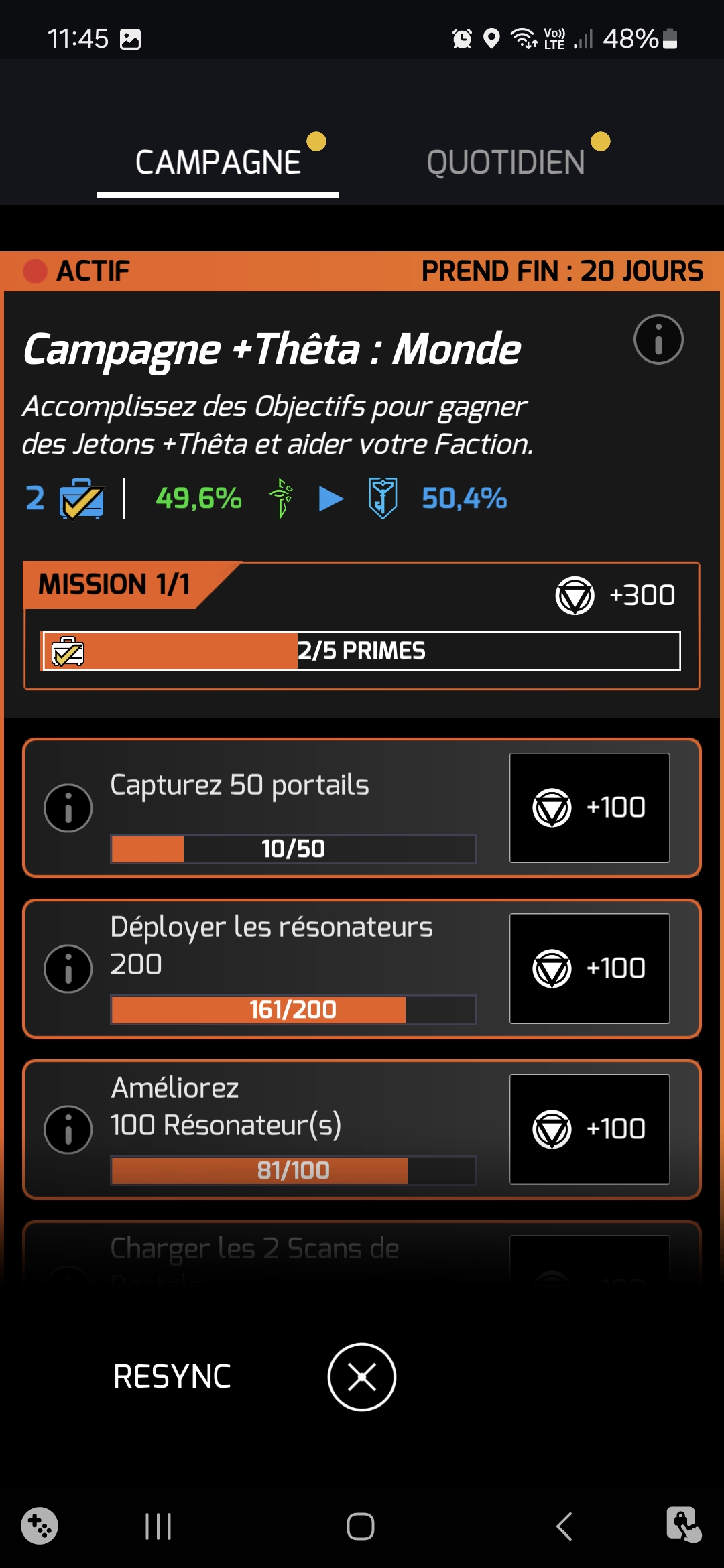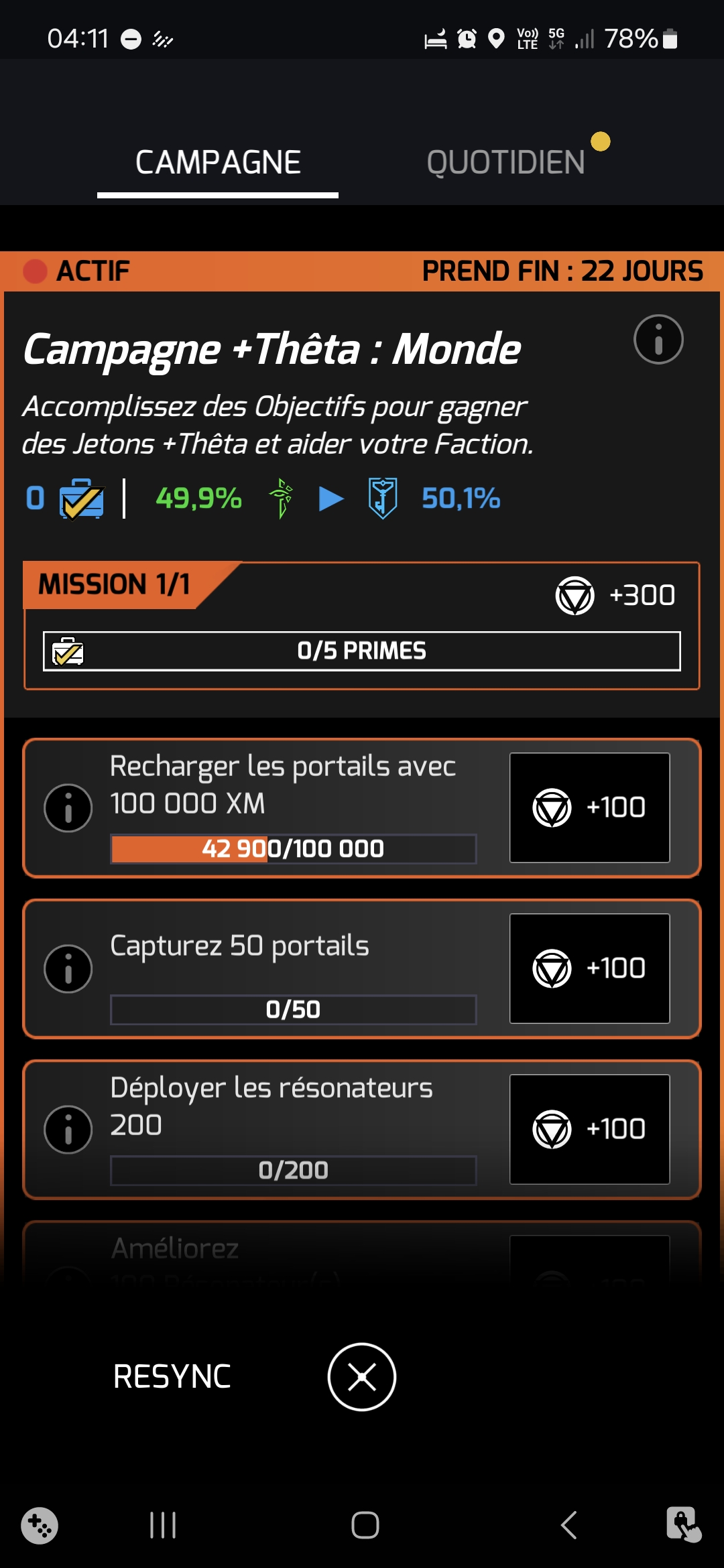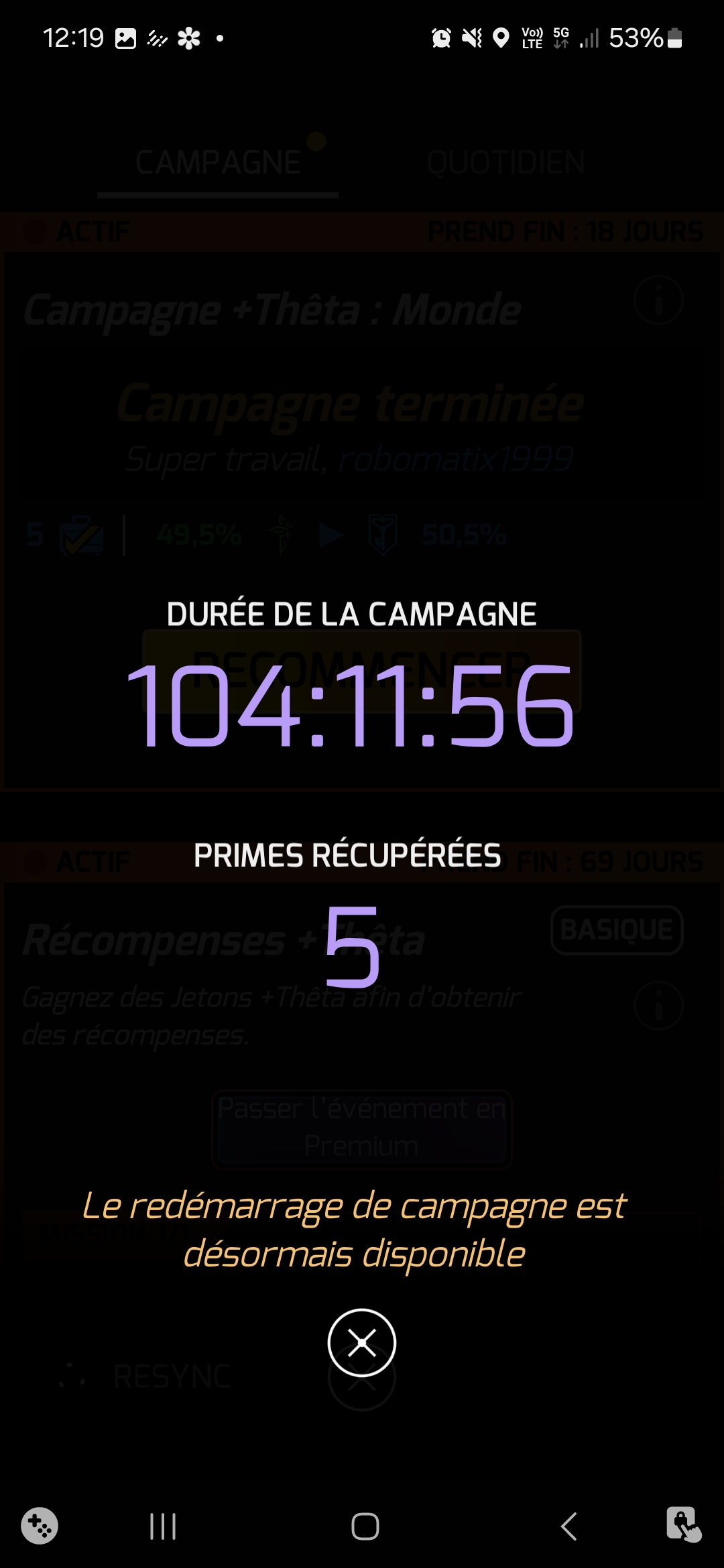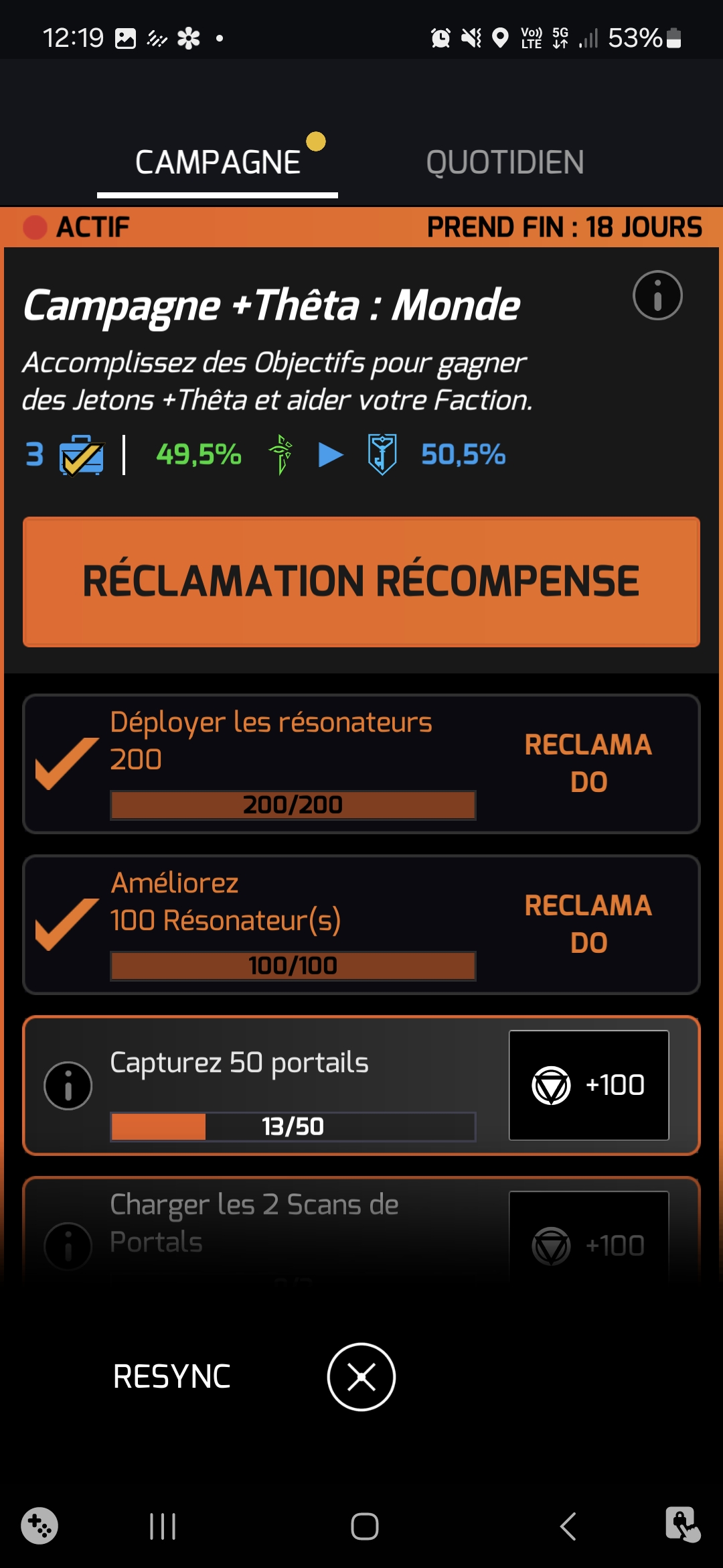 Le mois d’Avril 2025 a vu commencé le campagne +Thêta à Ingress. Une fois les 5 premières primes faites, j’ai validé la campagne comme vous pouvez le voir.
