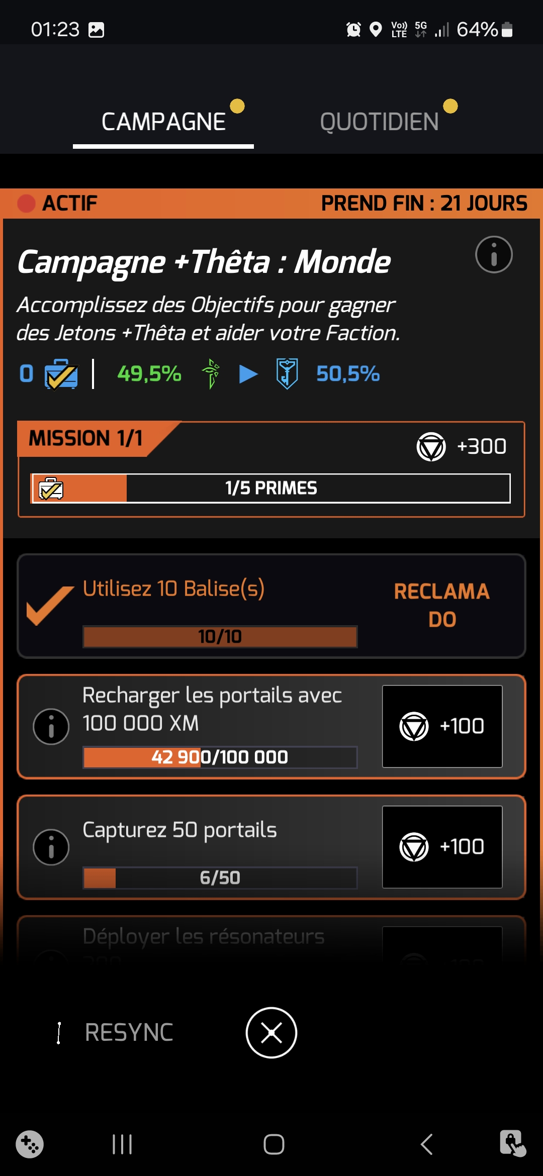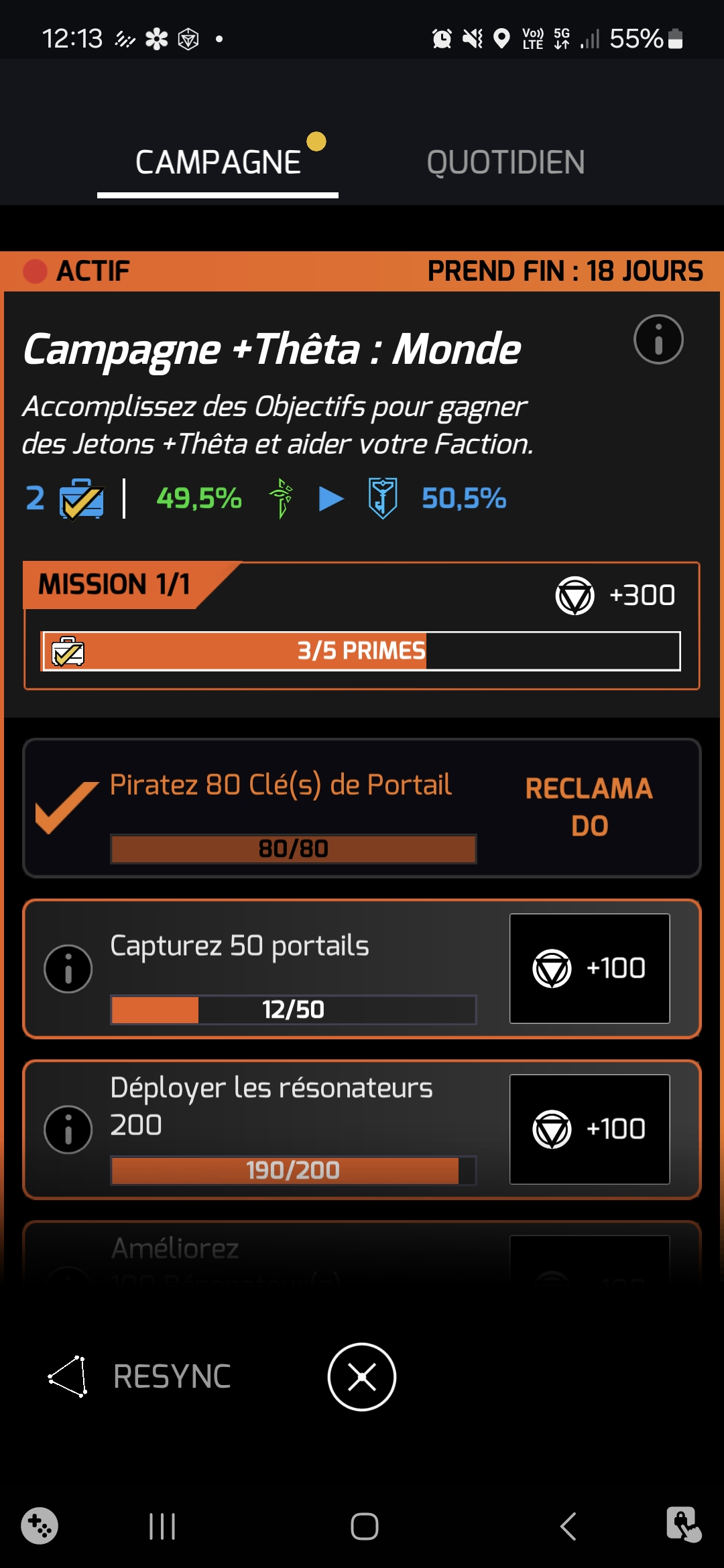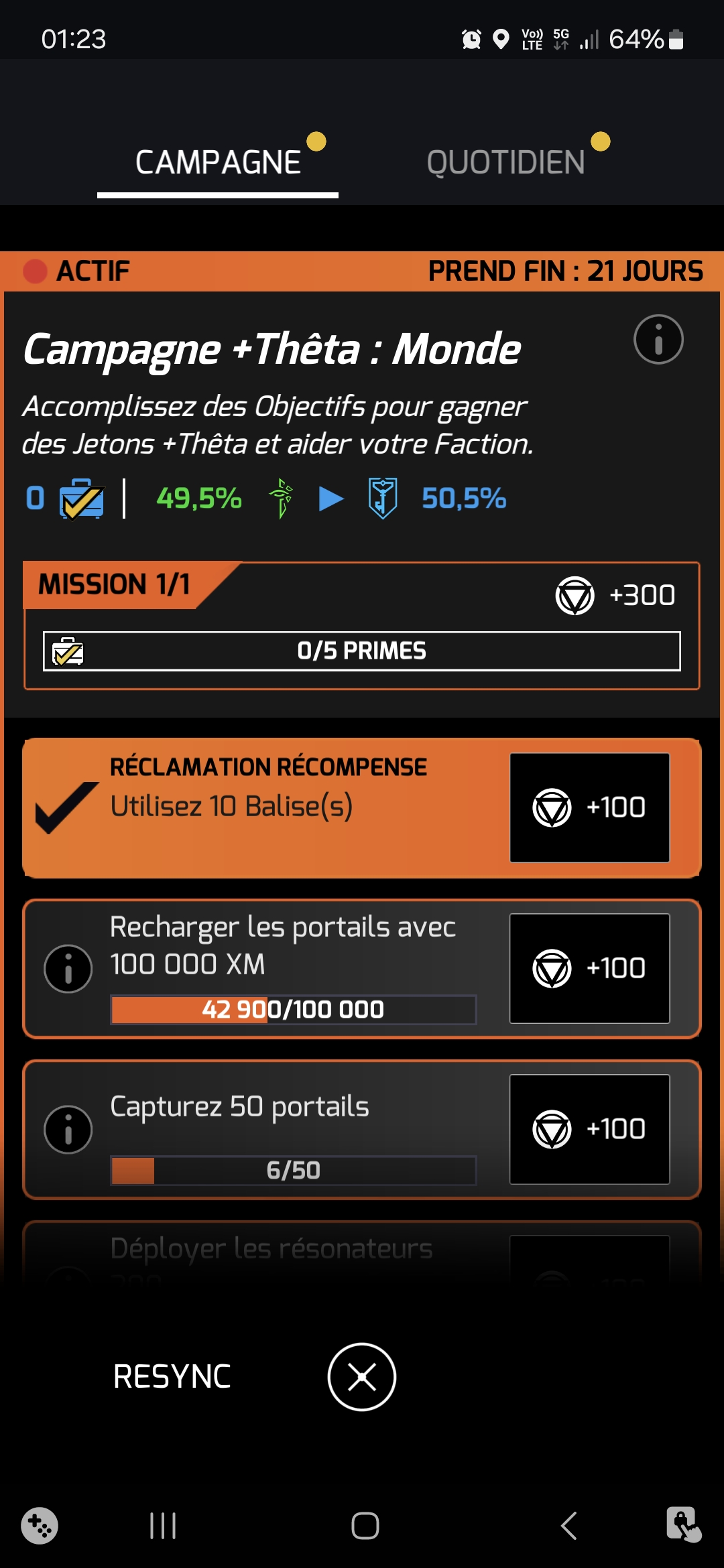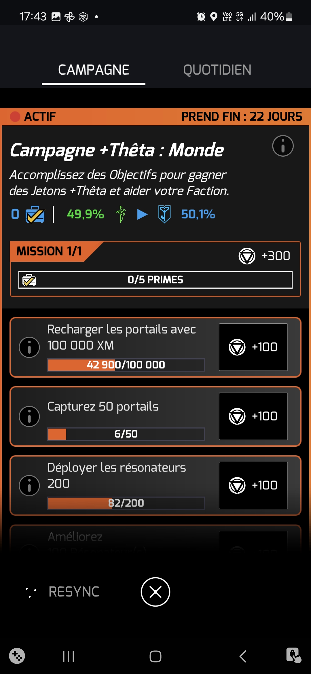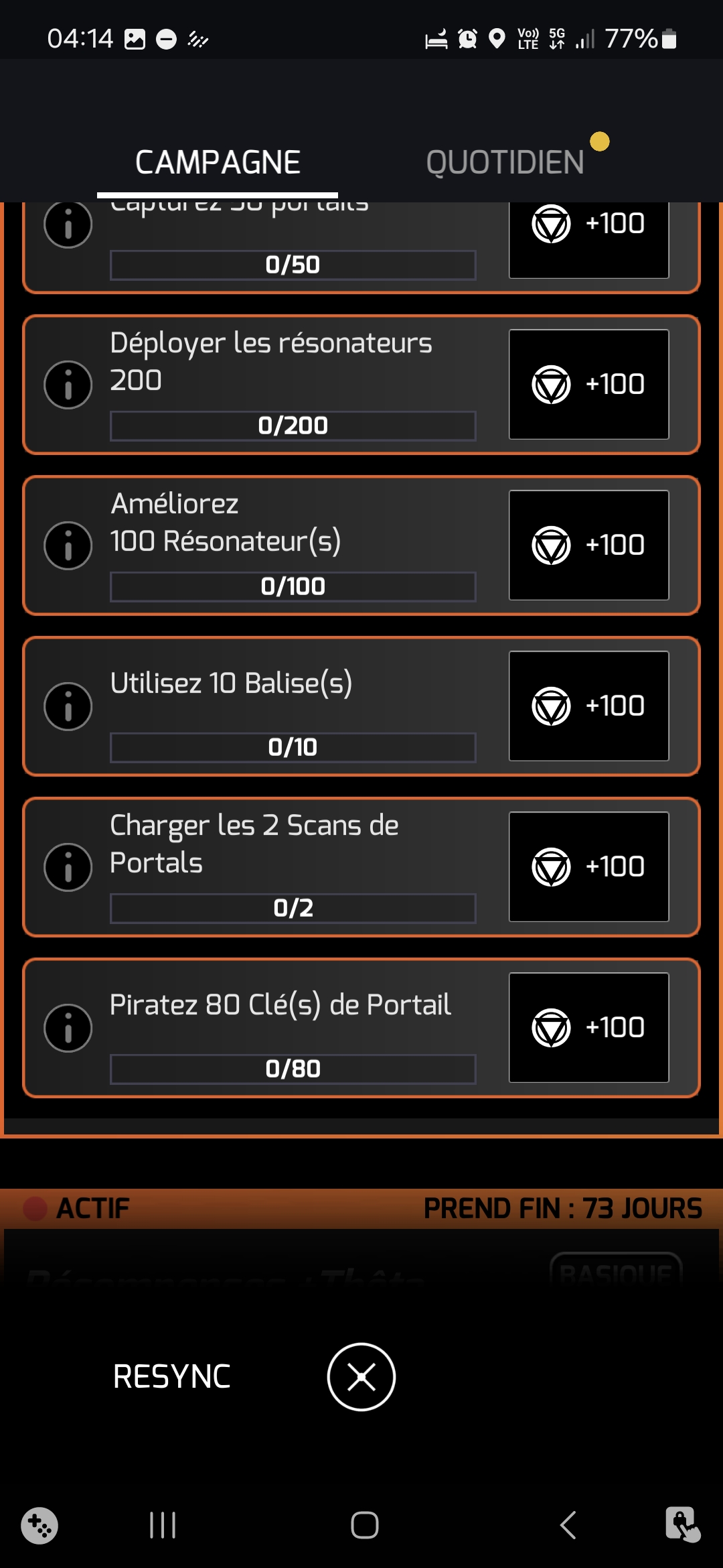 Le mois d’Avril 2025 a vu commencé le campagne +Thêta à Ingress. Une fois les 5 premières primes faites, j’ai validé la campagne comme vous pouvez le voir.