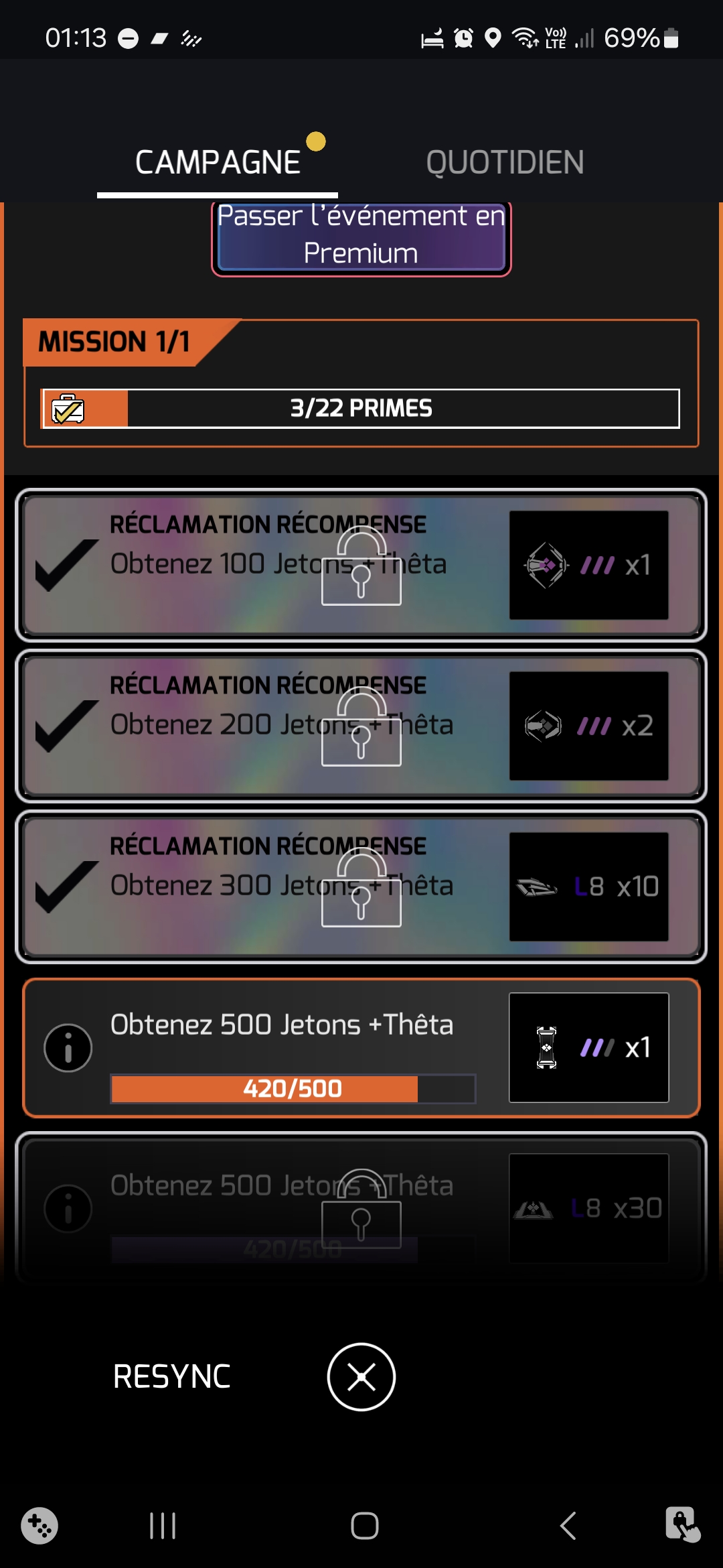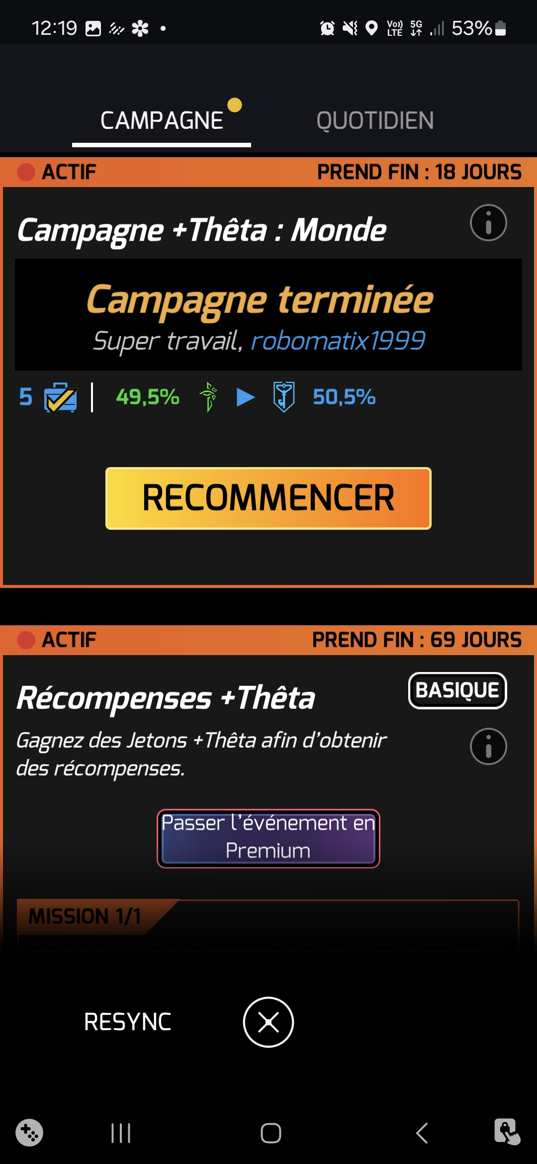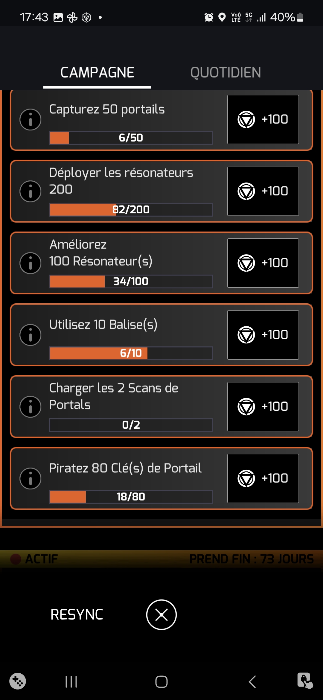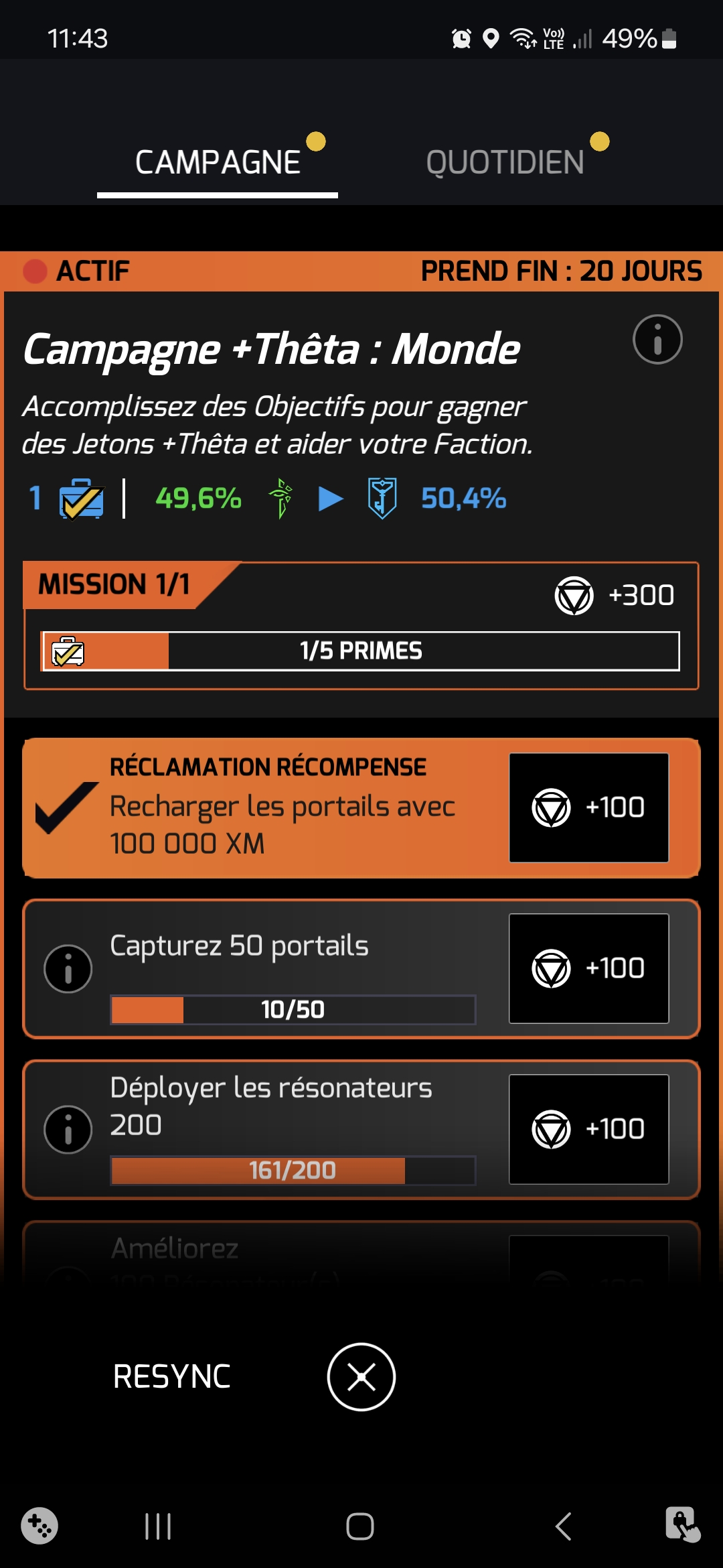 Le mois d’Avril 2025 a vu commencé le campagne +Thêta à Ingress. Une fois les 5 premières primes faites, j’ai validé la campagne comme vous pouvez le voir.