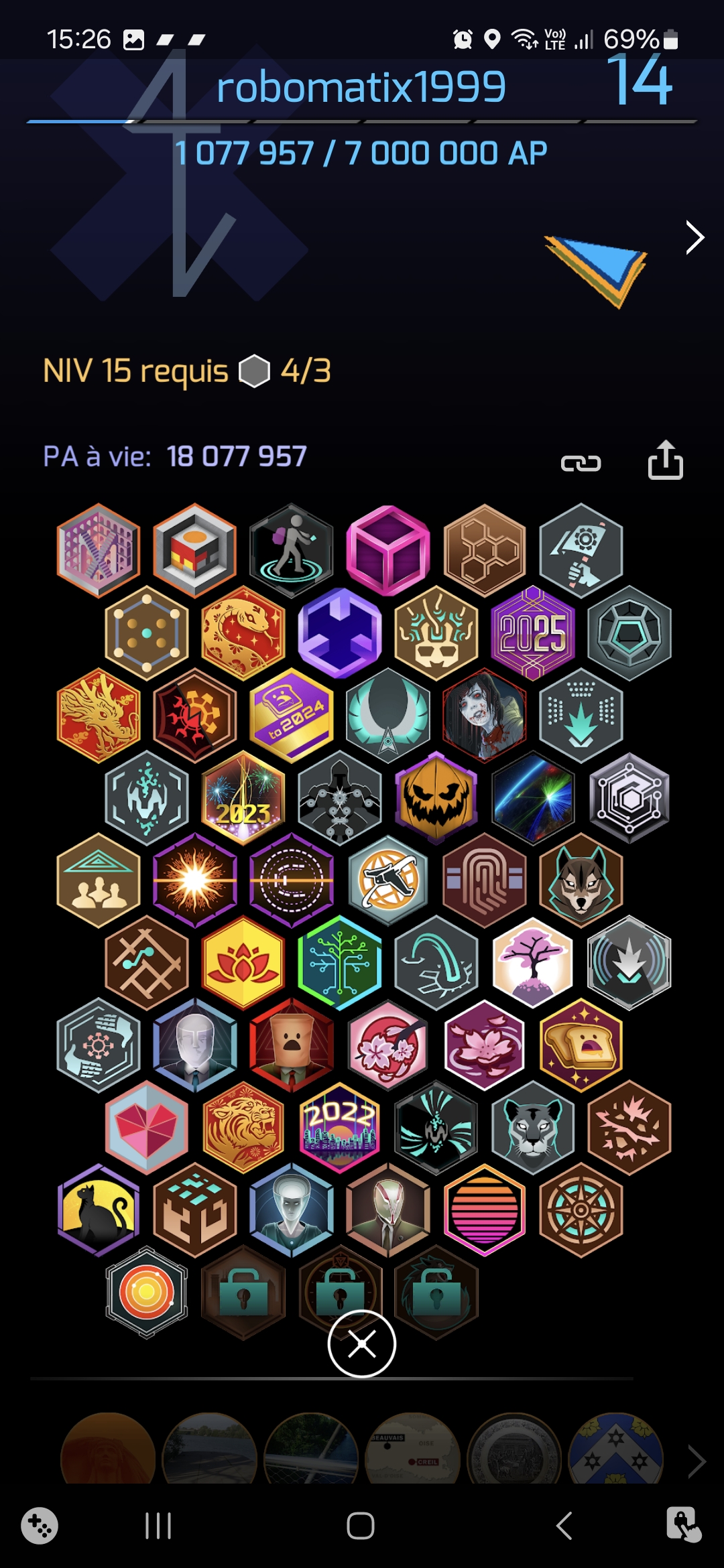 J’ai oublié de prendre une capture d’écran pour voir en j’en étais hier, dernier jour du mois d’Avril 2025. J’en ai pris une tout à l’heure alors que j’ai joué à Ingress ce matin.
