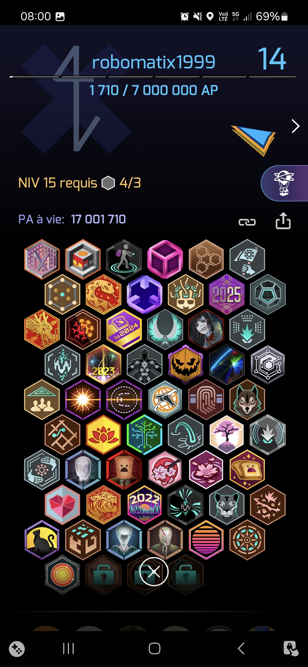 Sur la capture d’écran ci-dessus, on peut voir que j’ai les médailles pour atteindre le niveau 15. Par contre, il va falloir des que gagne plein d’AP. Je ne sais pas combien de temps cela va prendre. Des mois sans doute, peut être des années.