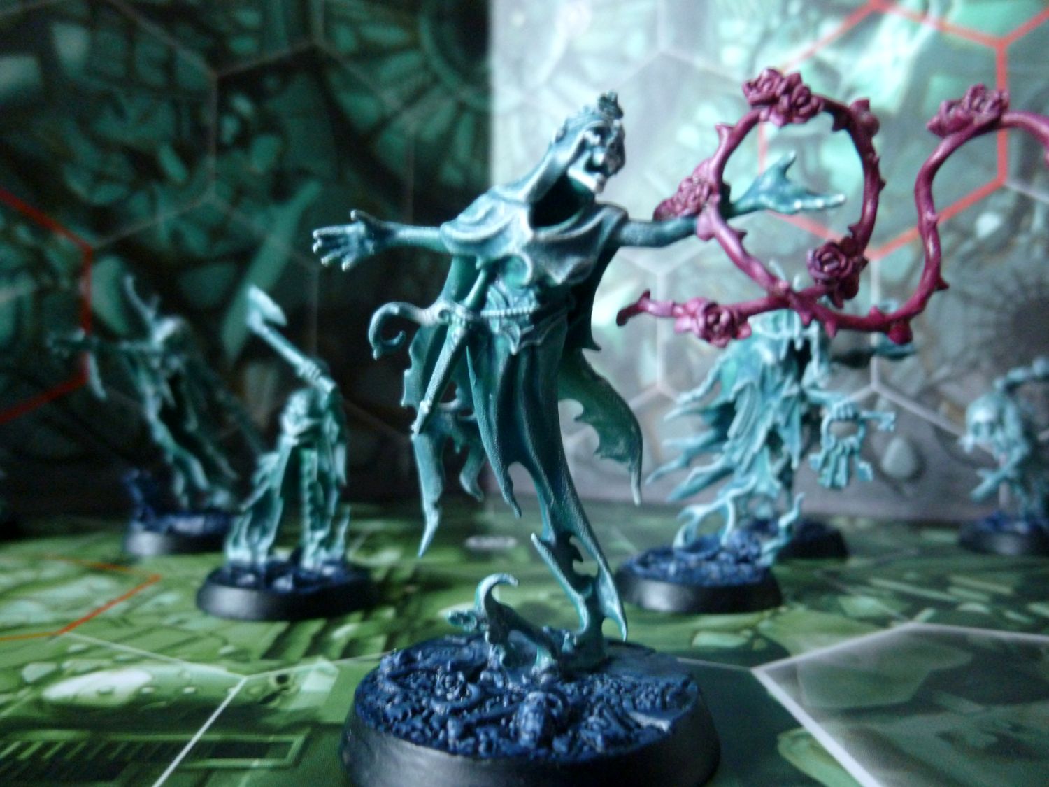 Voici sous ce petit texte quelques photos de ma warband Thorns of the briar Queen ! J’ai essayer de faire simple et efficace. Je voulais retrouver l’esprit monochrome de certains visuels du jeu Underworld NightVault. Après avoir regardé la vidéo de peinture sur la Reine des ronces, j’ai su comment peindre mes figs…